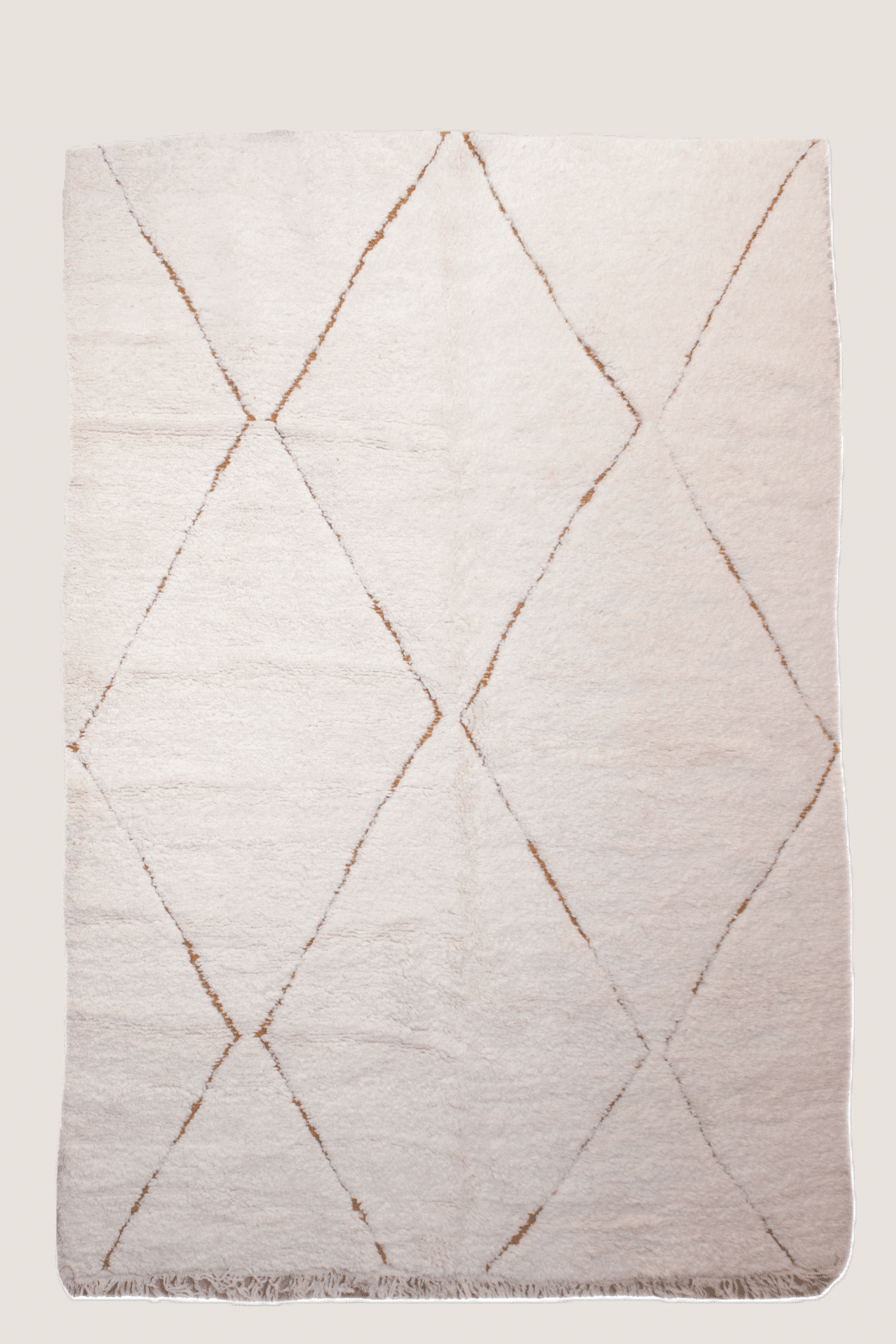 This exquisite Beni Ourain rug is handwoven from natural wool, featuring a classic diamond pattern on a soft, cream-toned background. With its plush texture and timeless appeal, this Moroccan rug brings warmth and elegance to any space.