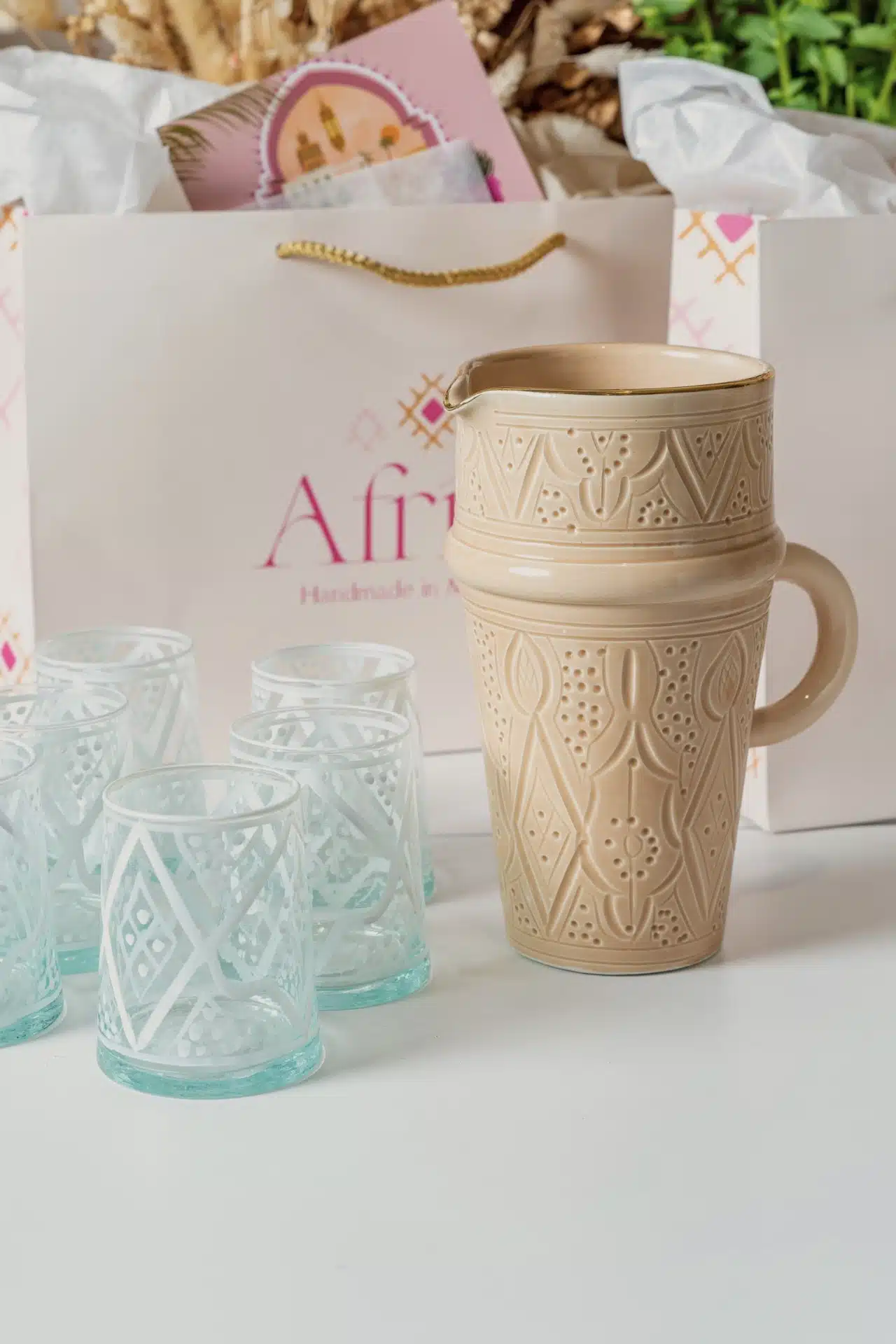 A beautiful jug, hand-carved and decorated with 12K gold. use it for cold and hot drinks.