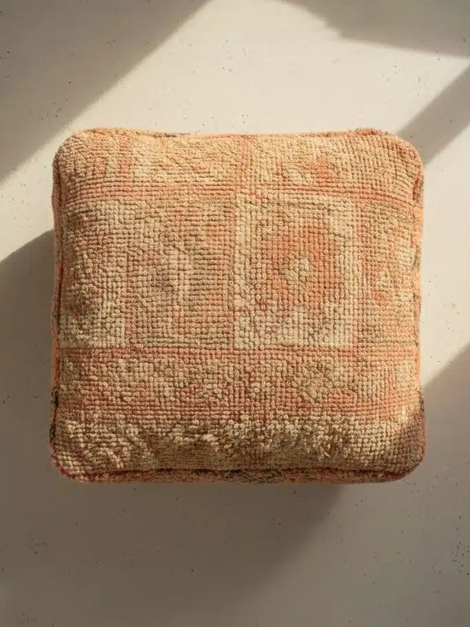 This unique floor cushion is handcrafted from a genuine vintage wool rug, carrying decades of history and artistry in every knot. The warm, earthy color palette and authentic tribal patterns add an instant layer of bohemian flair and cozy texture to any living space, bedroom, or nursery. As a one-of-a-kind vintage piece, it’s not just furniture – it’s a story waiting to be told in your home.