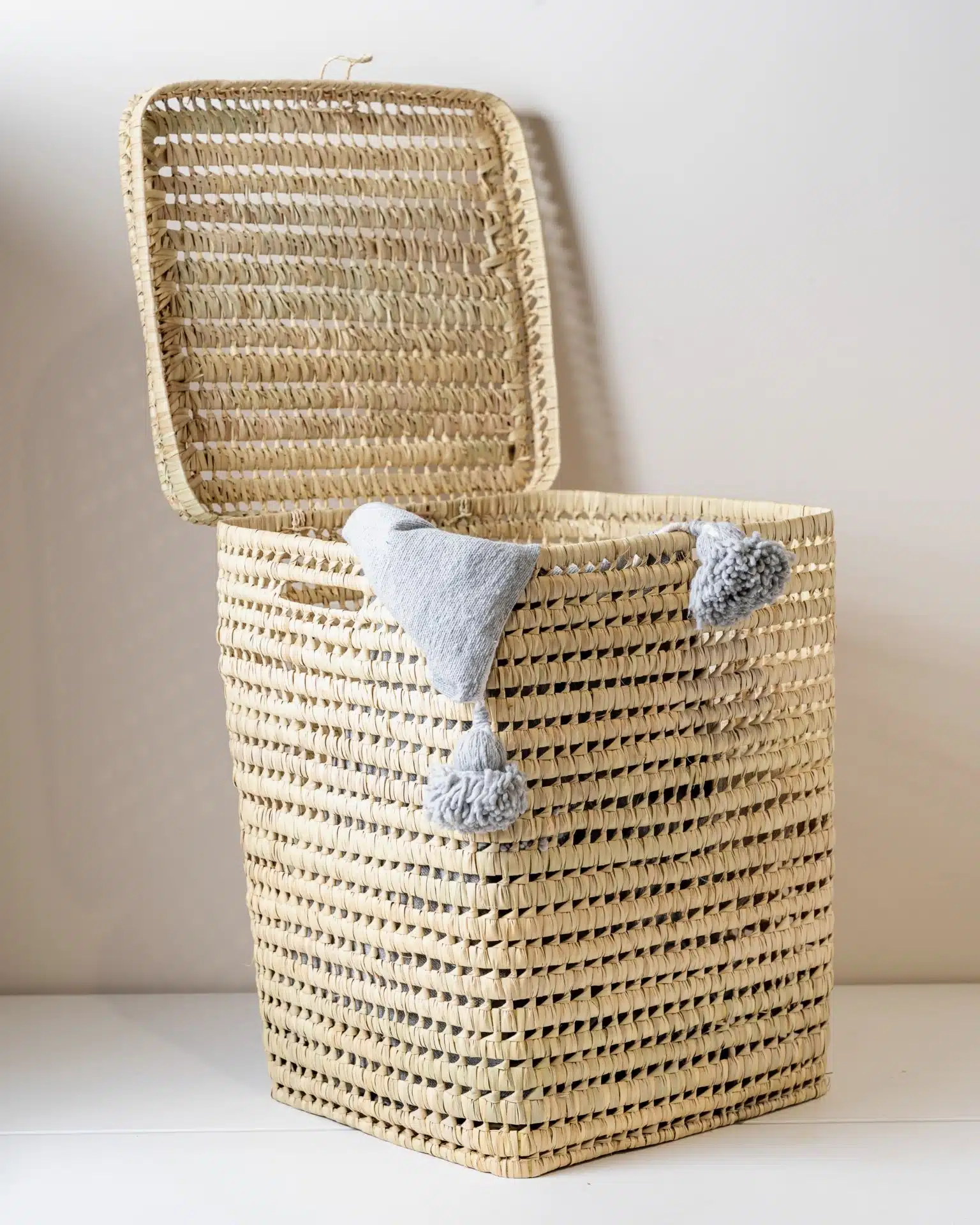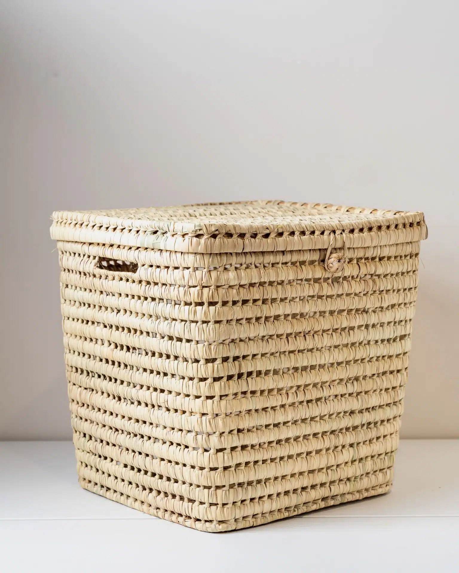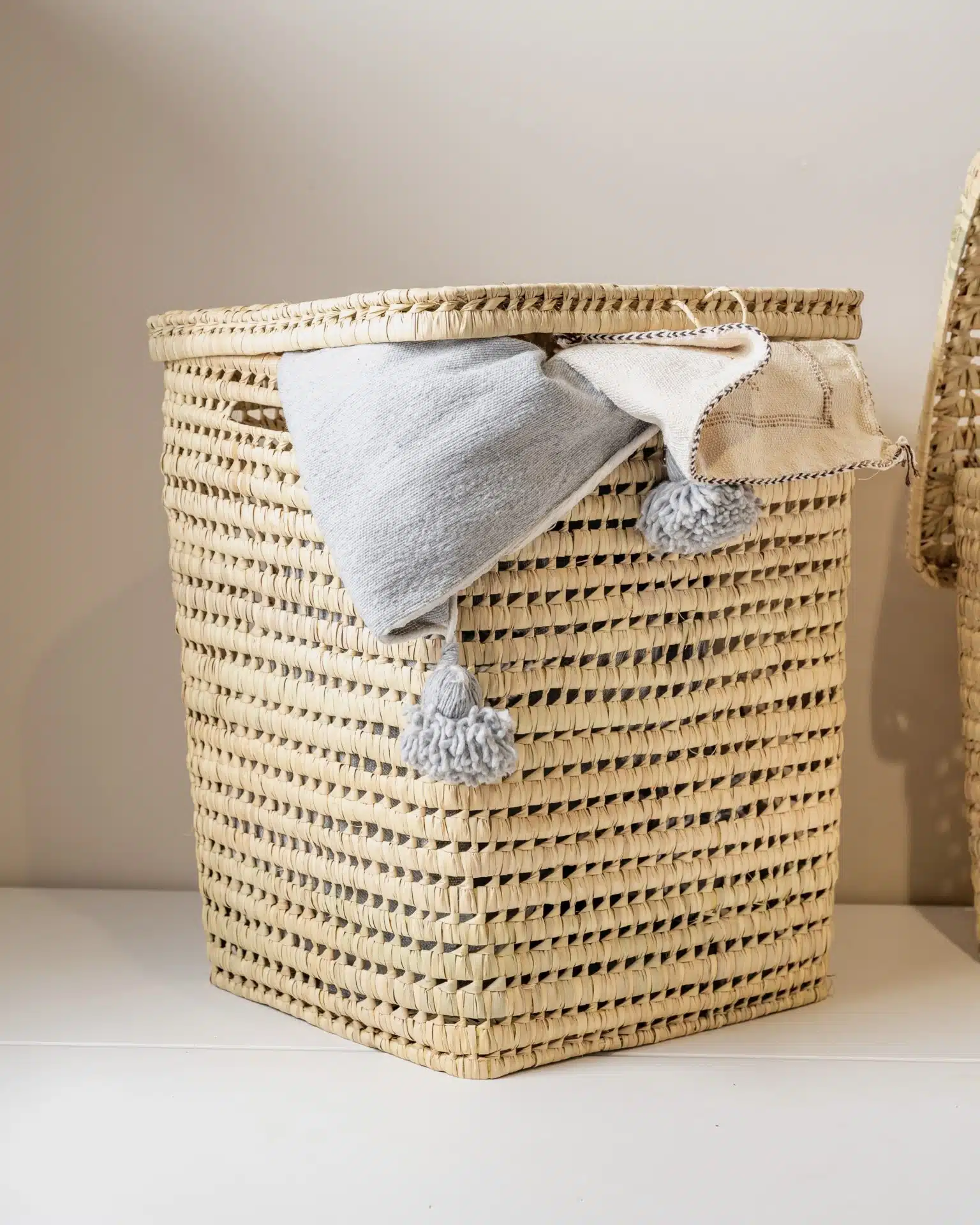 This handcrafted woven laundry basket is both stylish and functional. Made from natural fibers, it provides a sturdy and breathable storage solution for laundry or household essentials. Its elegant and minimalistic design makes it a perfect addition to any space.