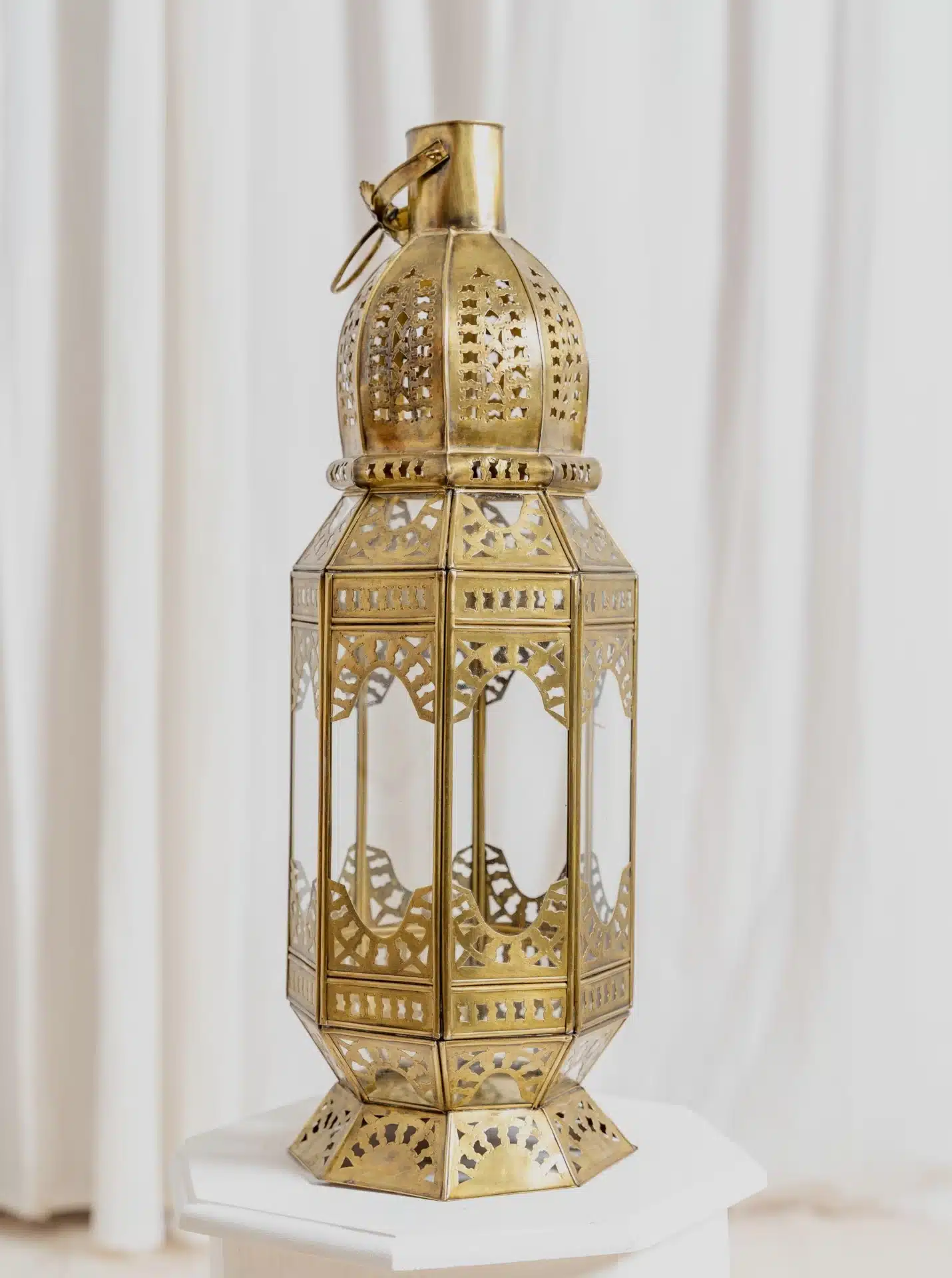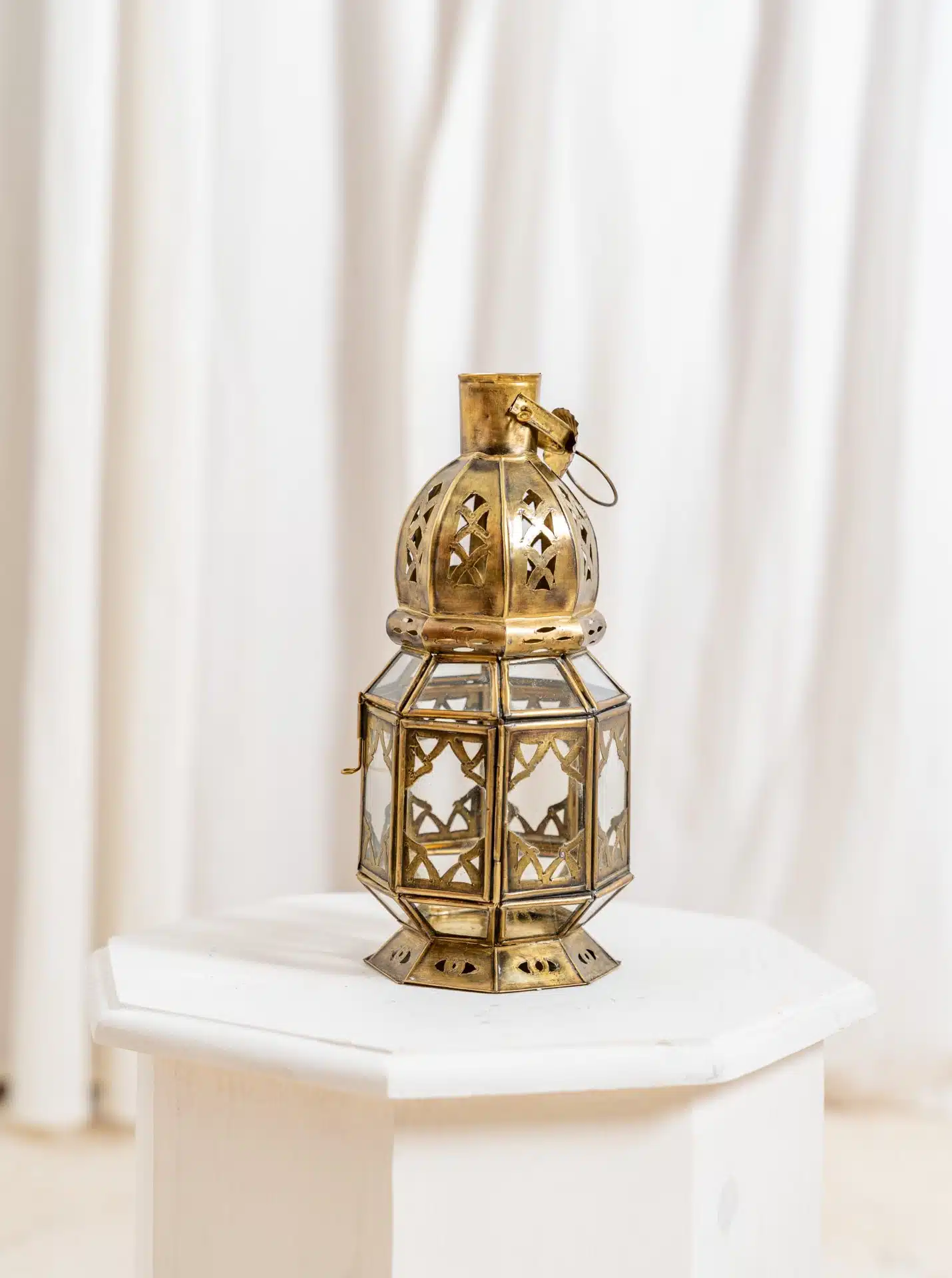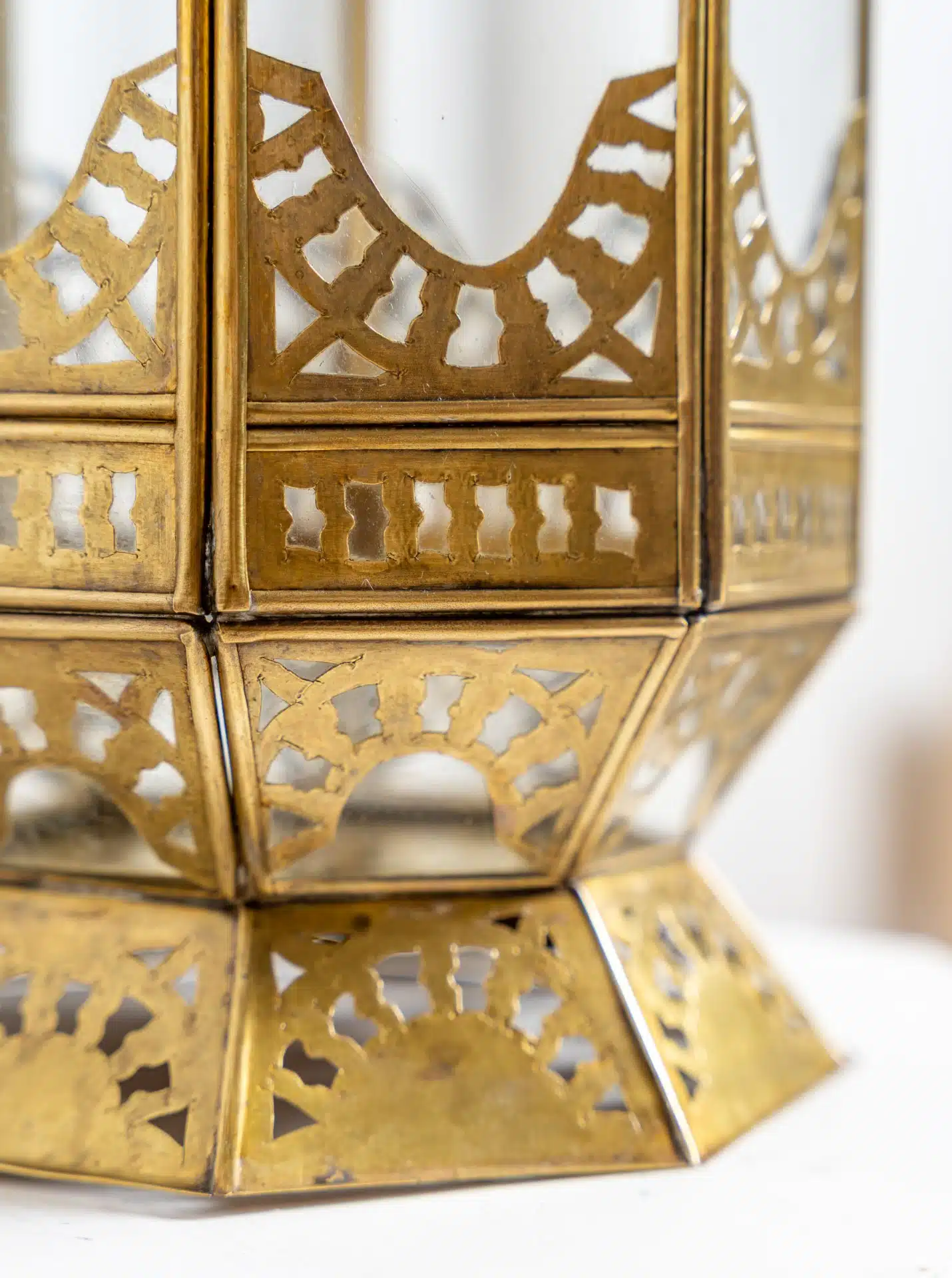 Handcrafted Moroccan lanterns made of copper, designed authentically by skilled artisans. Each lantern features delicate lace-like patterns and clear glass panels. When a candle is lit inside, the light reflects through the design and casts its shape onto the walls – a stunning effect that fills the space with a warm glow and a touch of magical tradition.