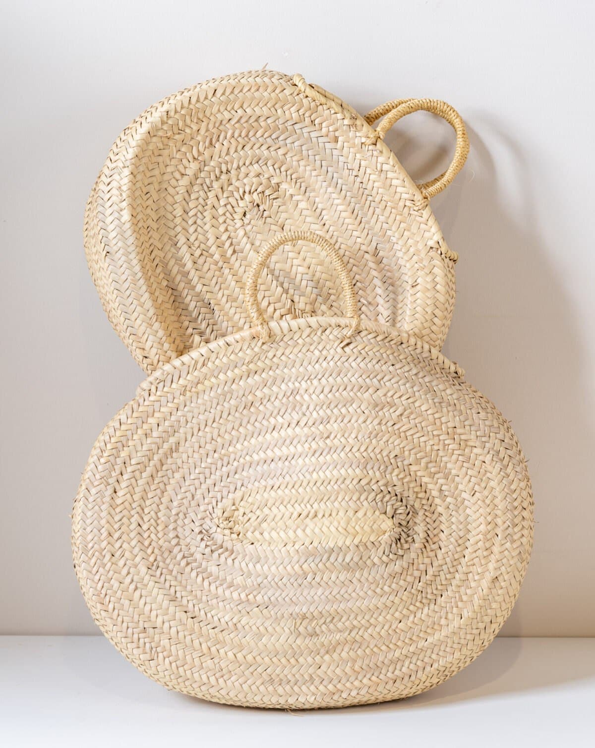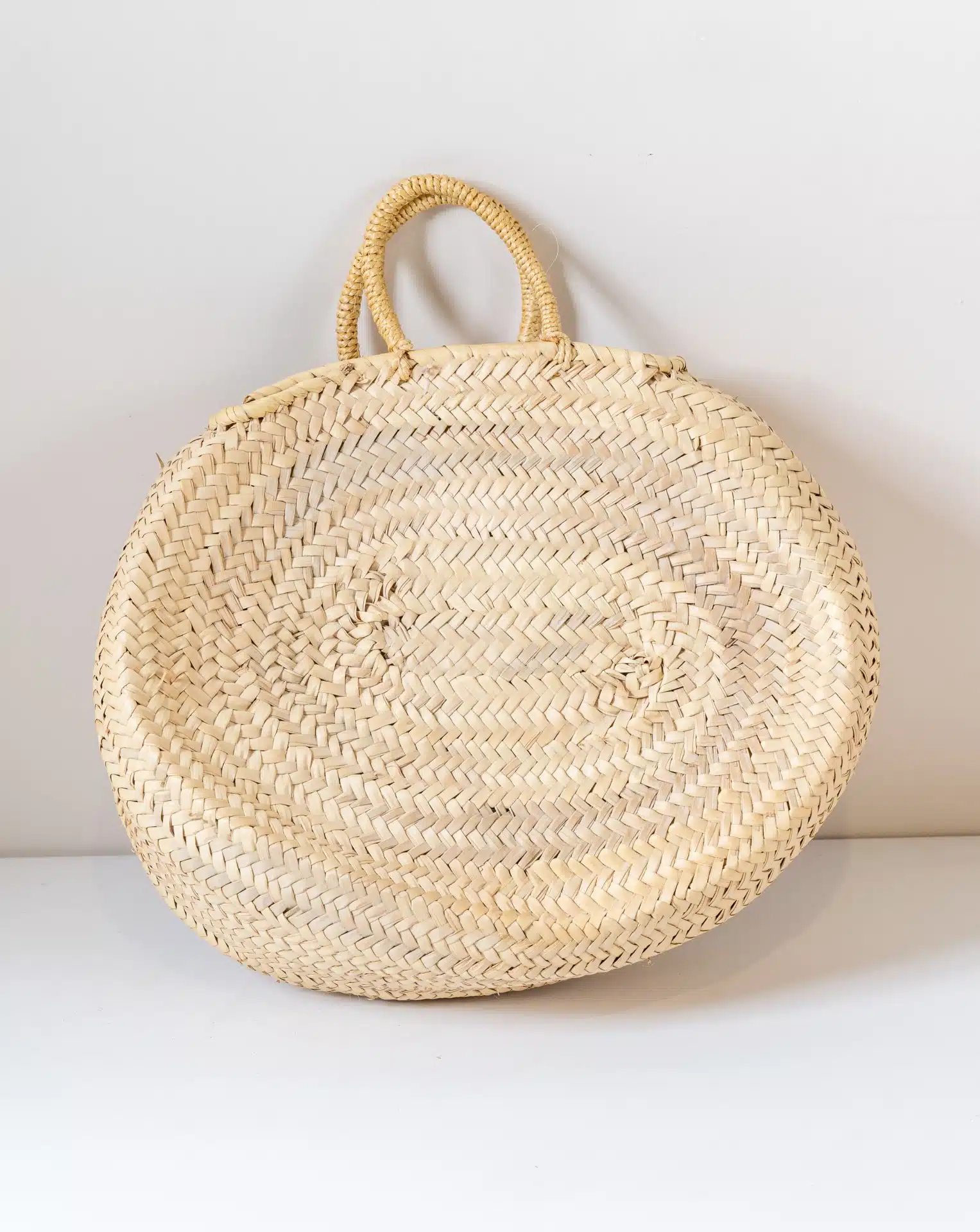This unique round woven basket is handcrafted from natural straw, offering a minimalist yet elegant design. Its sturdy handles provide a comfortable grip, making it perfect for stylish outings, beach days, or home décor. A timeless piece that blends beauty and practicality effortlessly.