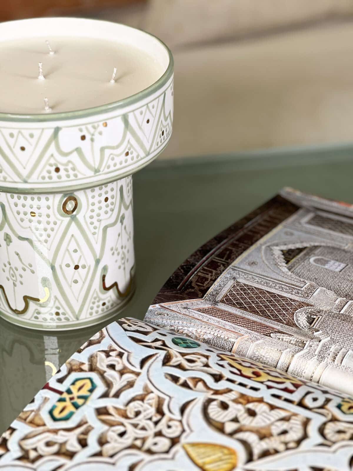This beautiful candle was developed in the city of Grasse, France. the candle wax is soy-based and therefore durable over time, the cotton wicks ensure good combustion and disperse the fragrance in the room. The delicate fragrance will bring a real sense of Moroccan gardens to your home. It features 12-karat gold ornaments that create a unique and prestigious design. When the candle is finished, clean the jug and use it as a beautiful serving bowl.