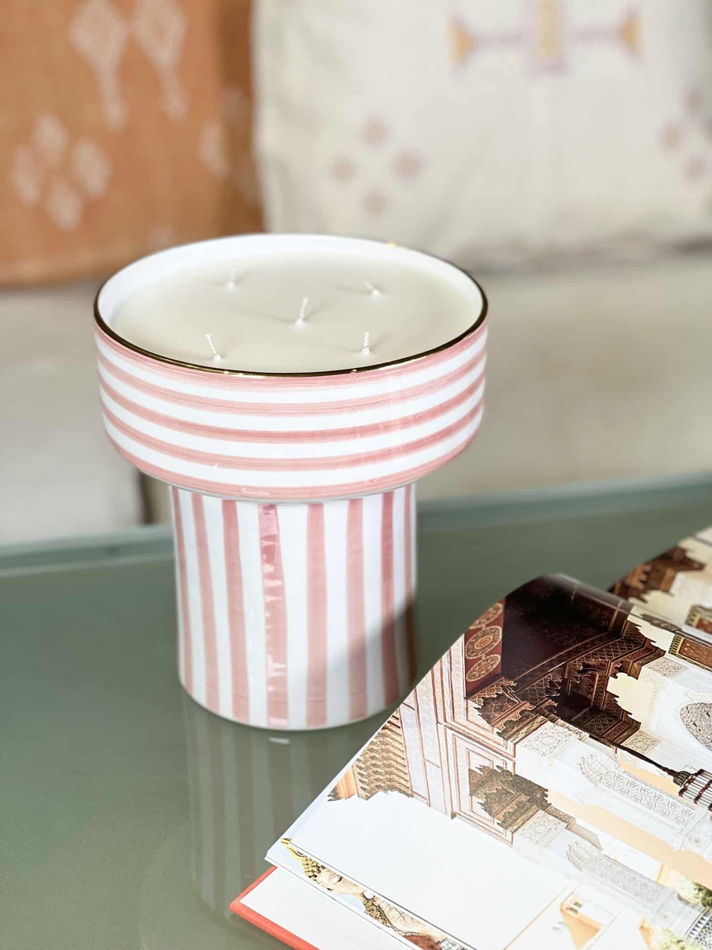 This beautiful candle was developed in the city of Grasse, France. the candle wax is soy-based and therefore durable over time, the cotton wicks ensure good combustion and disperse the fragrance in the room. The delicate fragrance will bring a real sense of Moroccan gardens to your home. It features 12-karat gold ornaments that create a unique and prestigious design. When the candle is finished, clean the jug and use it as a beautiful serving bowl.