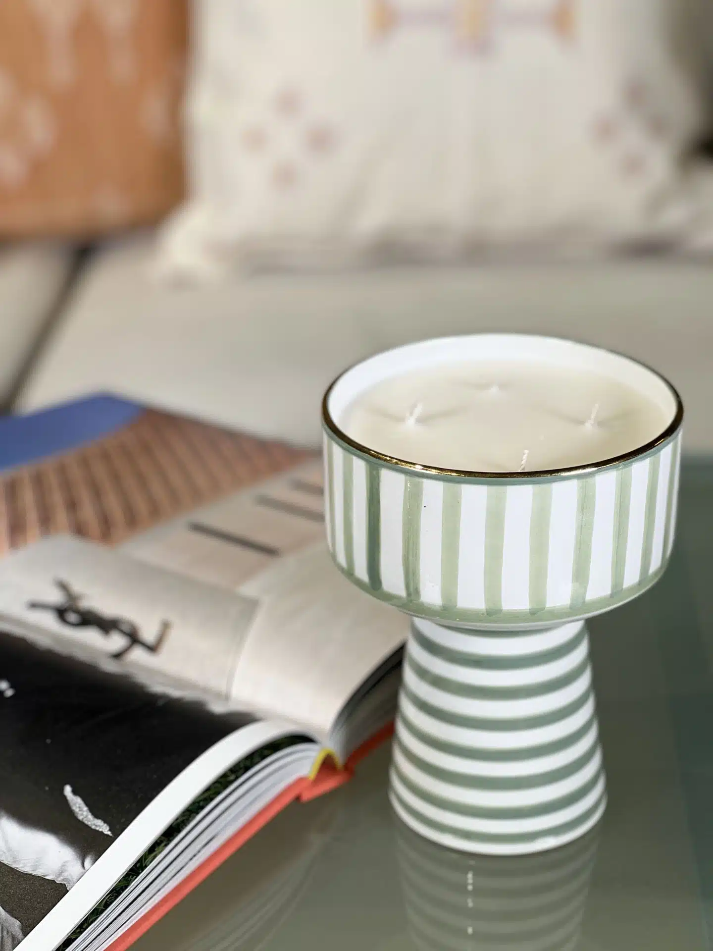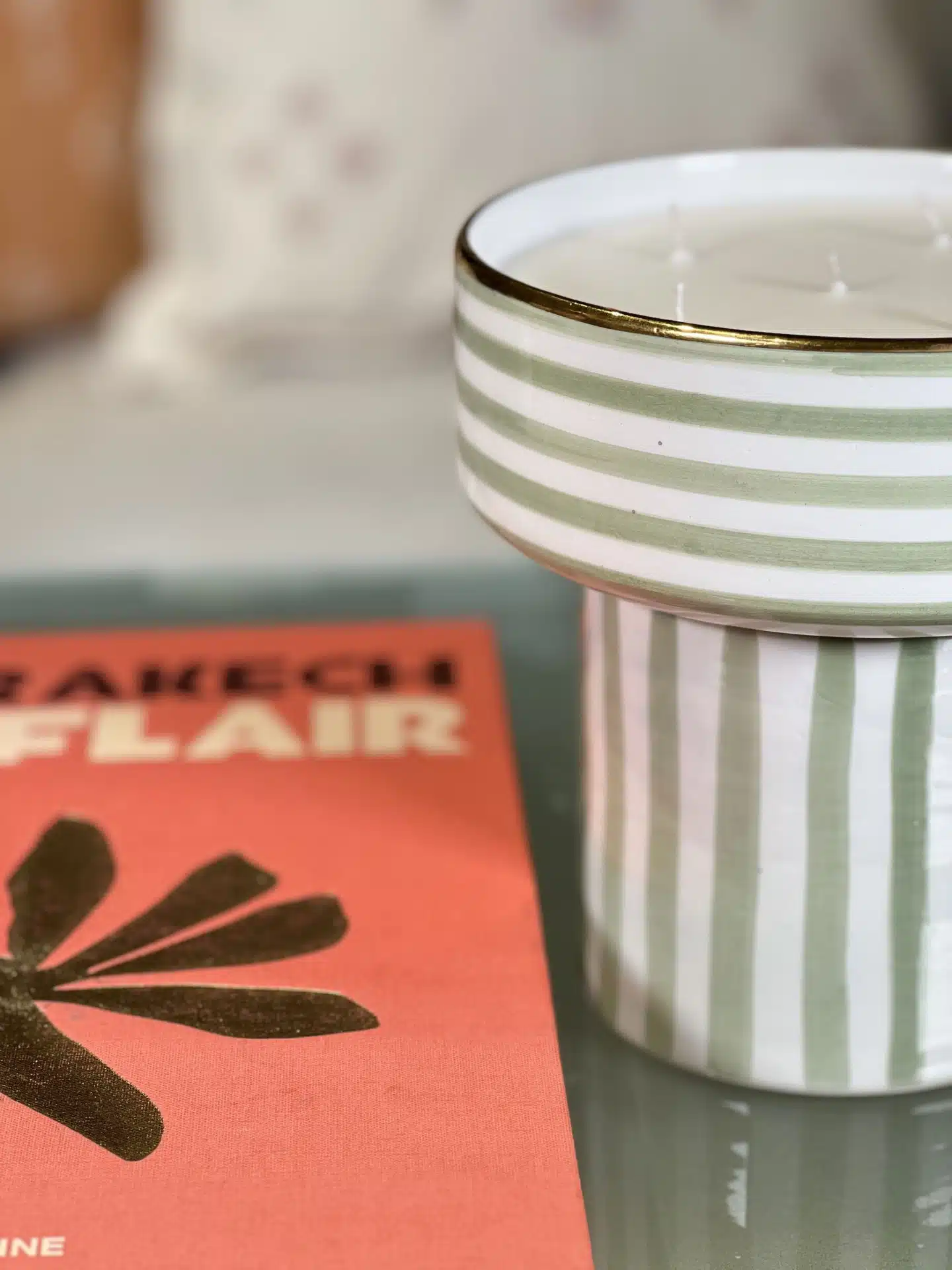 This beautiful candle was developed in the city of Grasse, France. the candle wax is soy-based and therefore durable over time, the cotton wicks ensure good combustion and disperse the fragrance in the room. The delicate fragrance will bring a real sense of Moroccan gardens to your home. It features 12-karat gold ornaments that create a unique and prestigious design. When the candle is finished, clean the jug and use it as a beautiful serving bowl.