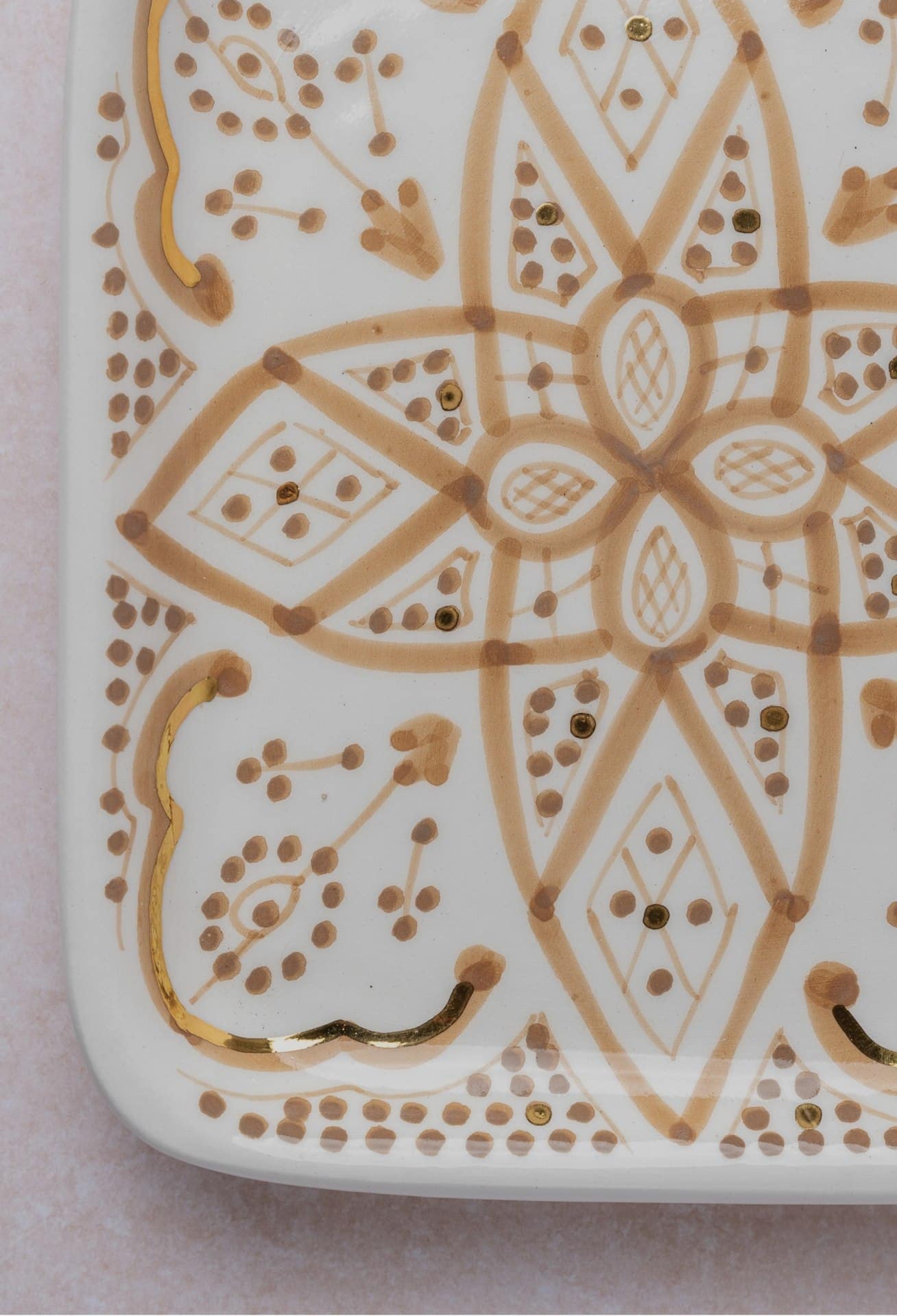 Hand-painted rectangular tray, decorated with 12K gold. Perfect for serving desserts and cakes. or use it as a beautiful jewelry tray.