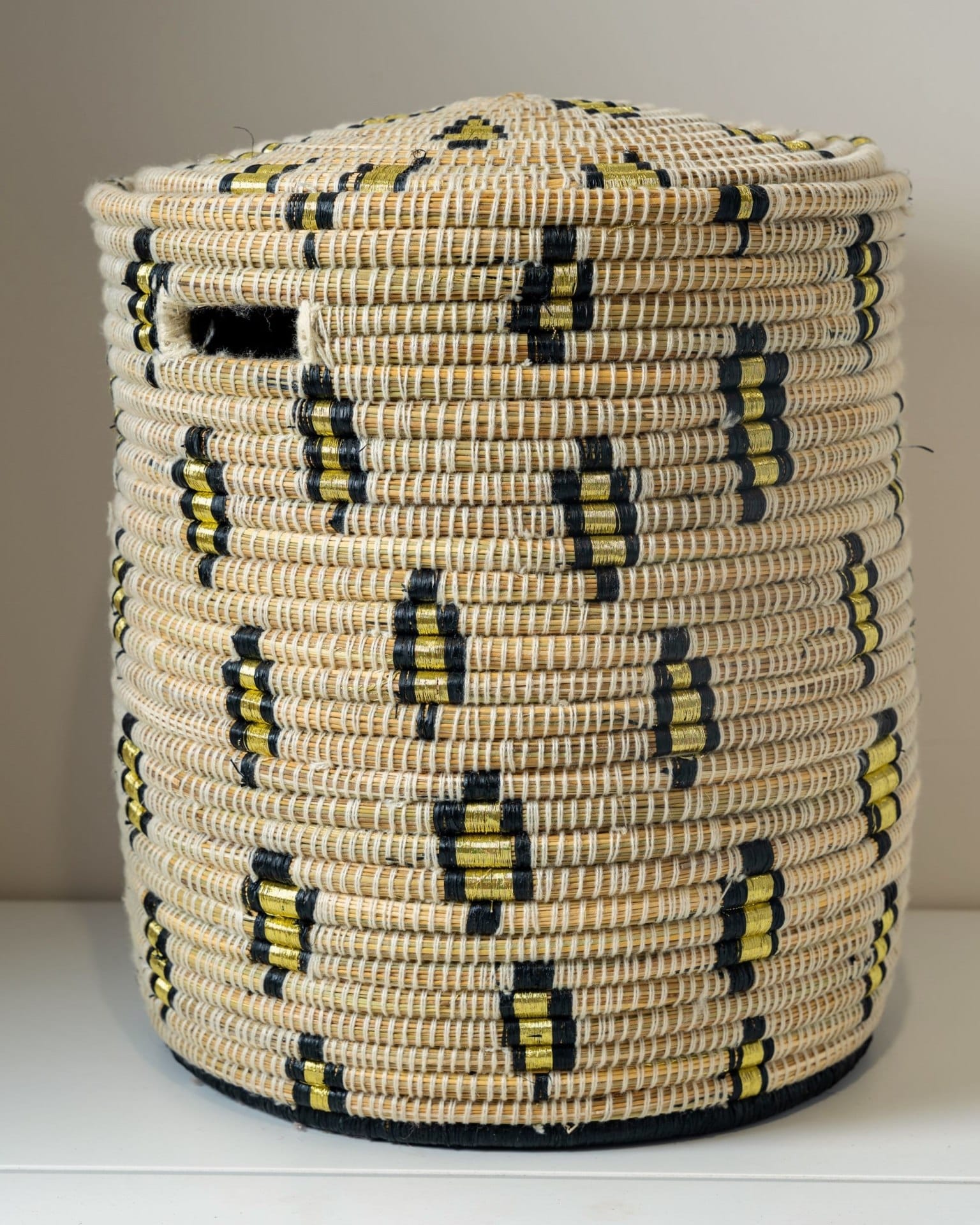 This beautifully handcrafted woven basket is made from natural palm leaves, offering a stylish and eco-friendly storage solution. Featuring leopard embroidery and a spacious design, it is perfect for organizing laundry, blankets, toys, or household essentials.