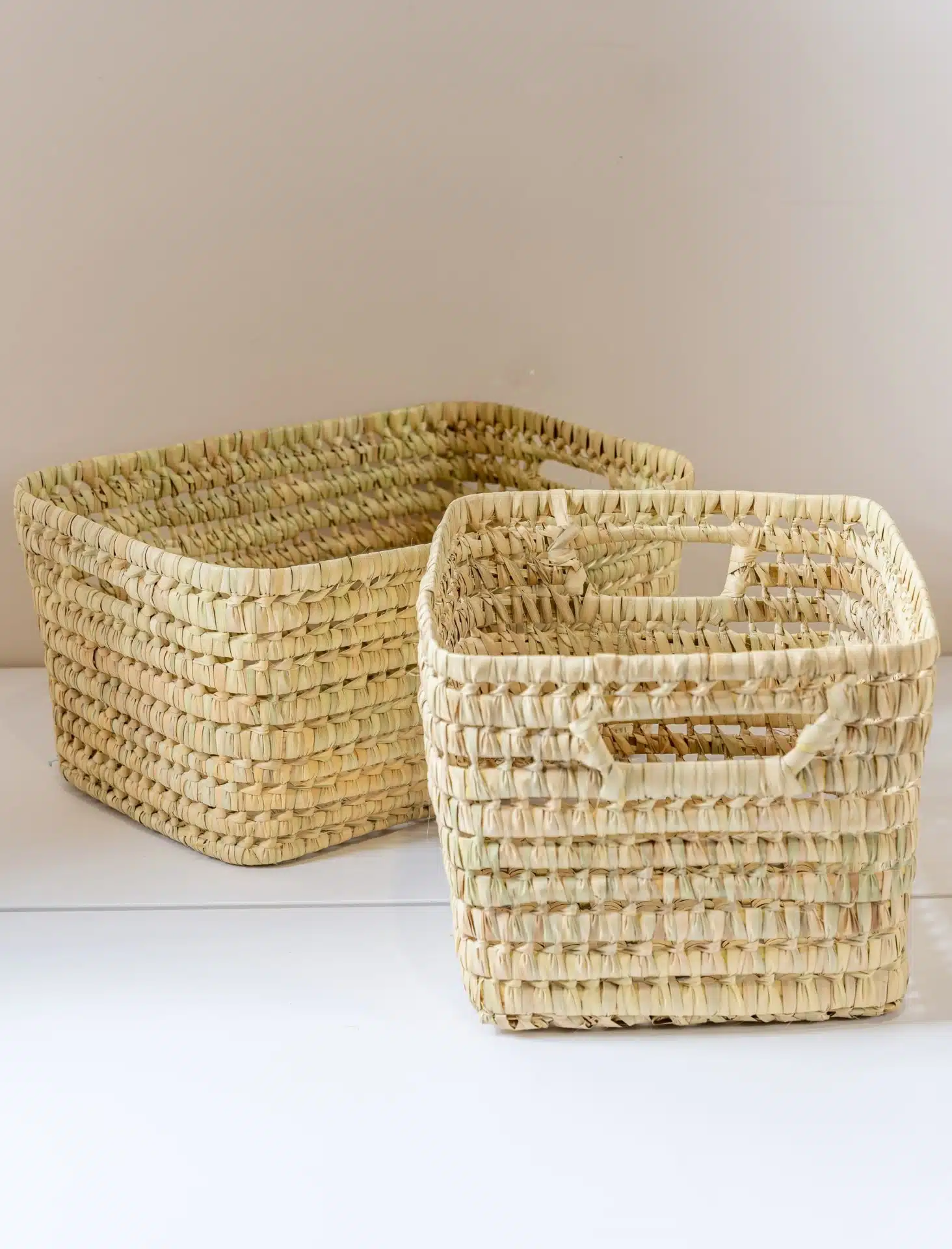 These handcrafted woven baskets offer a stylish and practical storage solution for any home. Made from natural fibers, they feature built-in handles for easy carrying and a durable structure for versatile use. Perfect for organizing household essentials while adding a touch of rustic charm.