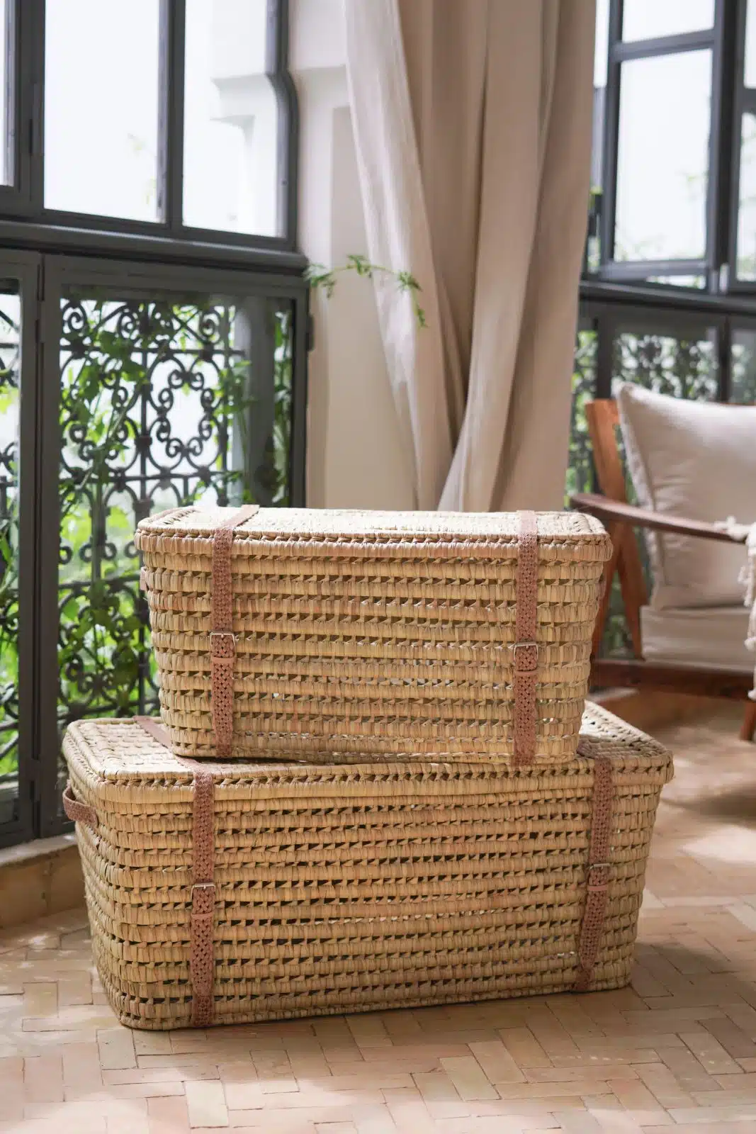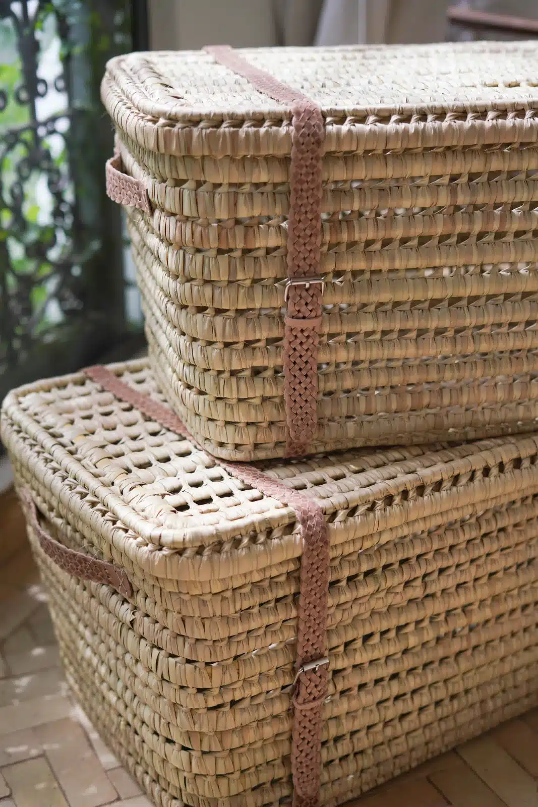 Discover the perfect blend of style and functionality with this woven storage baskets. Crafted from natural fibers, this basket offer a durable and elegant solution for organizing your home. The leather strap details add a refined touch, making it both practical and decorative. Ideal for storing blankets, towels, or everyday essentials.