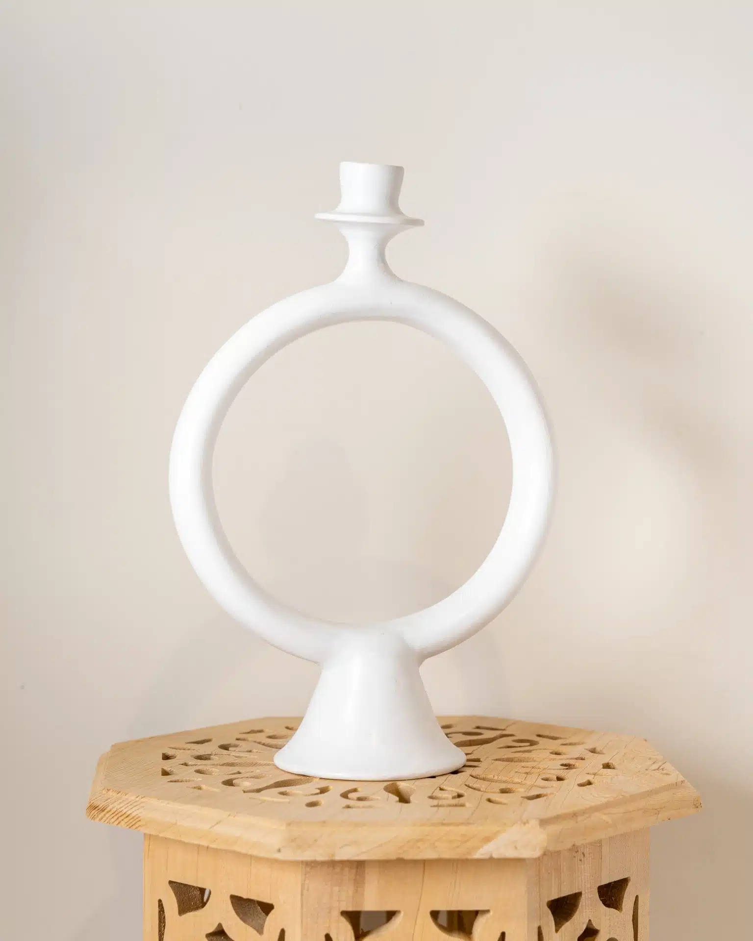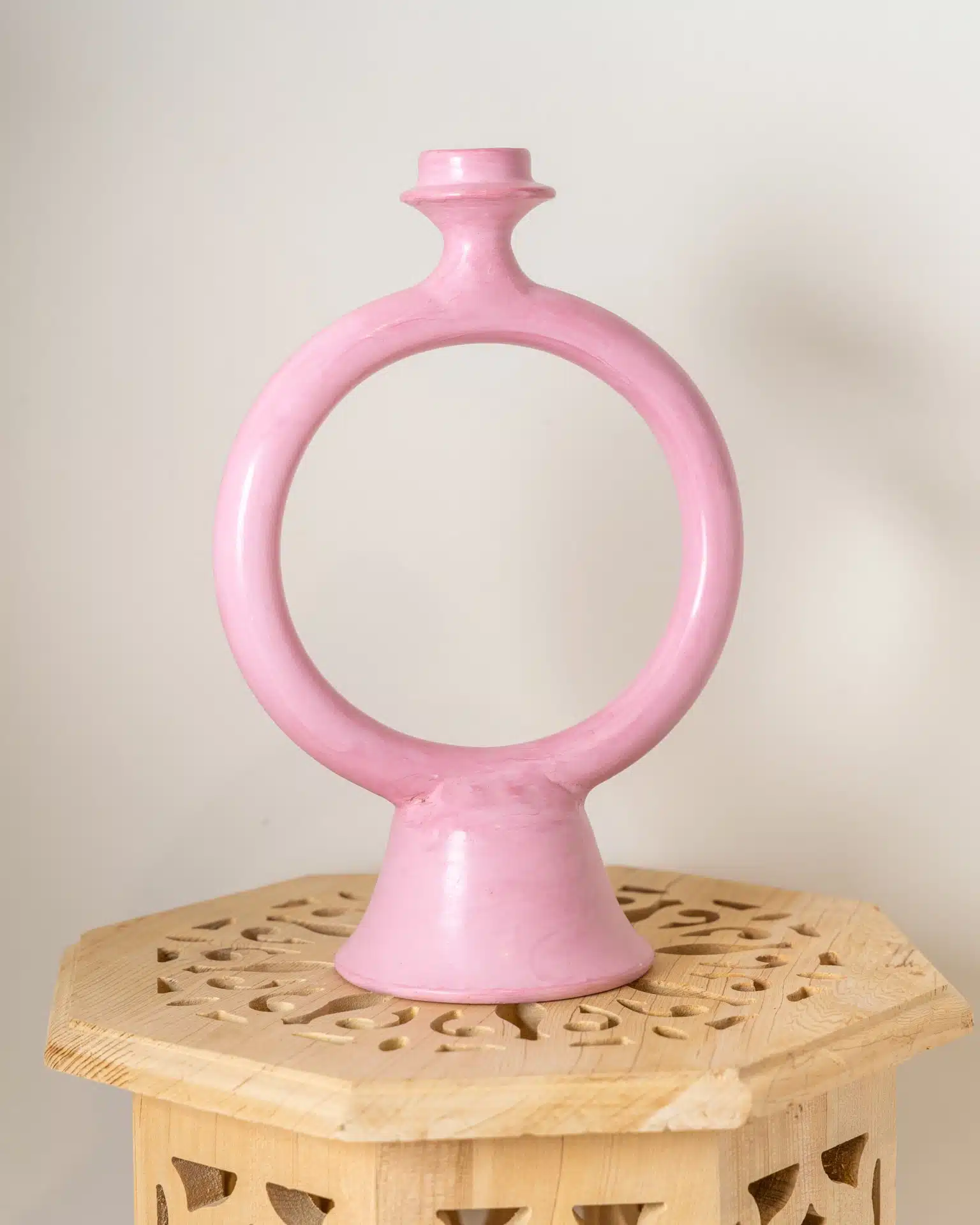 Elevate your space with this exquisite Tadelakt candle holder, handcrafted in Morocco. Its sculptural circular design, available in earthy and pastel tones, embodies both tradition and modern elegance. Made from the finest Tadelakt plaster, this piece adds a warm, organic touch to any setting, perfect for a serene ambiance.