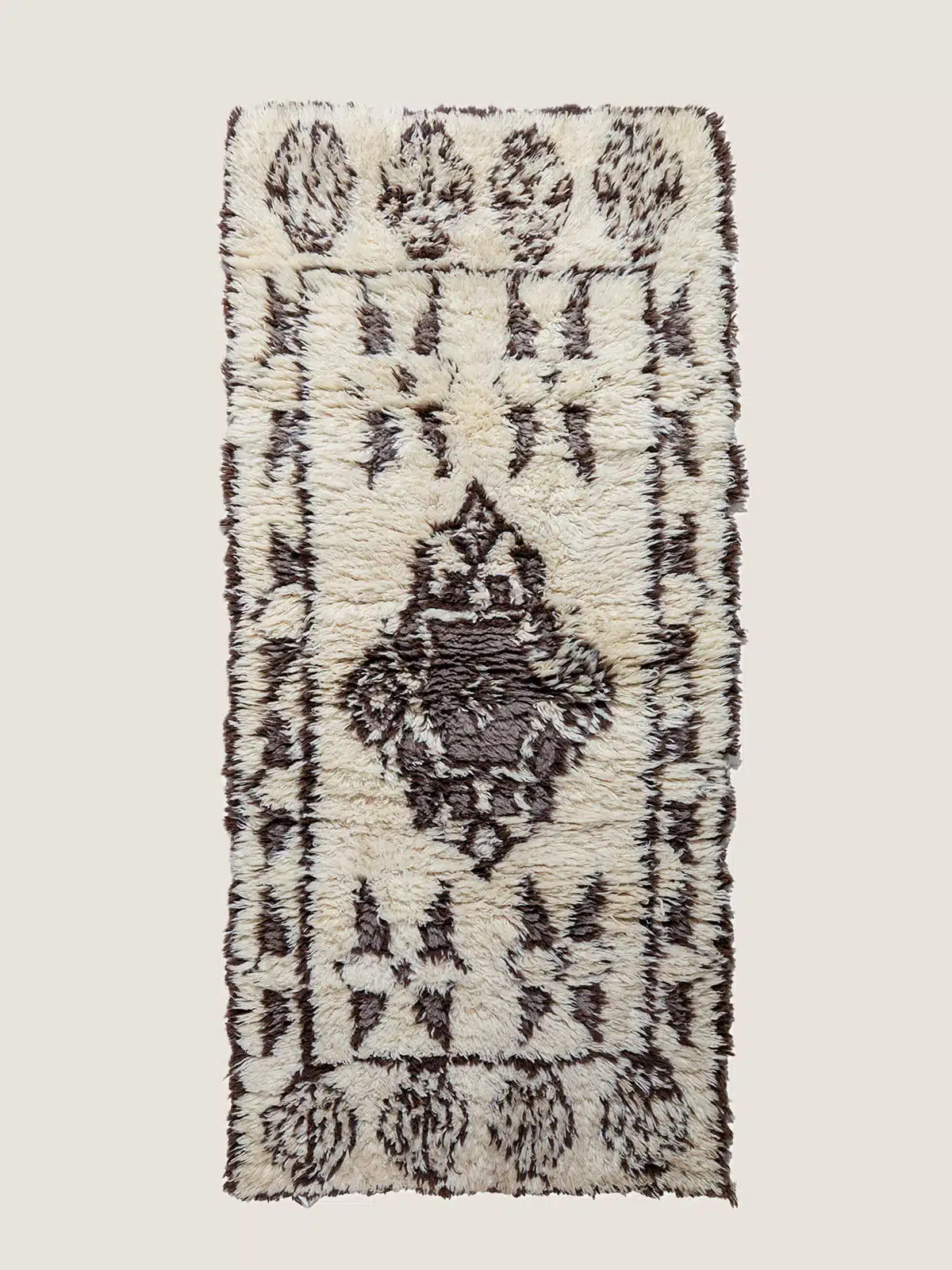 This one-of-a-kind rug is hand-woven from 100% premium wool in the Atlas Mountains of Morocco. Its unique medallion pattern and rich texture bring a touch authentic luxury and timeless boho-chic style to any space.