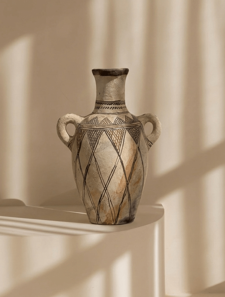 כדים מרוקאים בעבודת יד, עשויים חימר טבעי ומעוטרים בדפוסים מסורתיים, מביאים את האותנטיות של מרוקו לכל חלל.