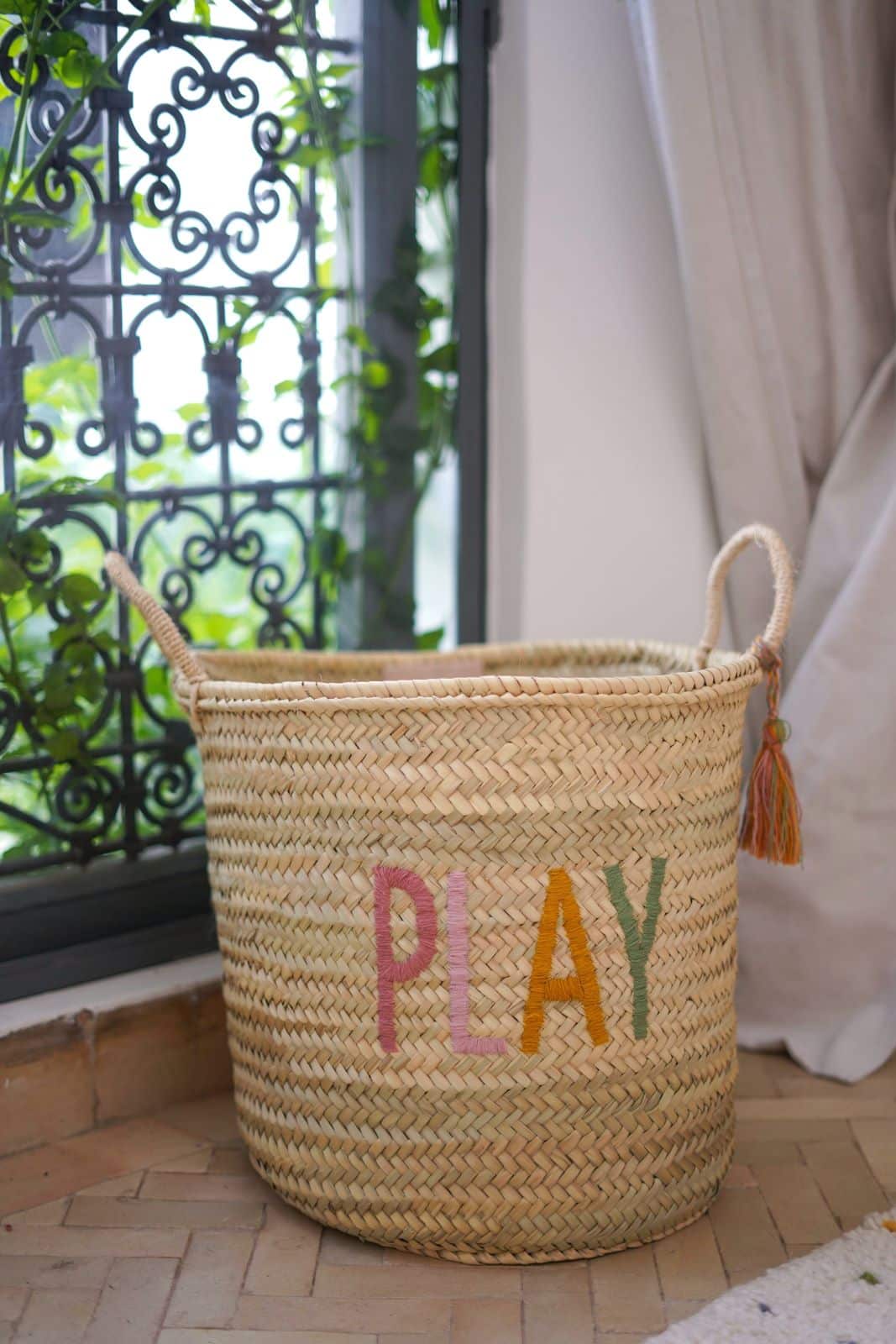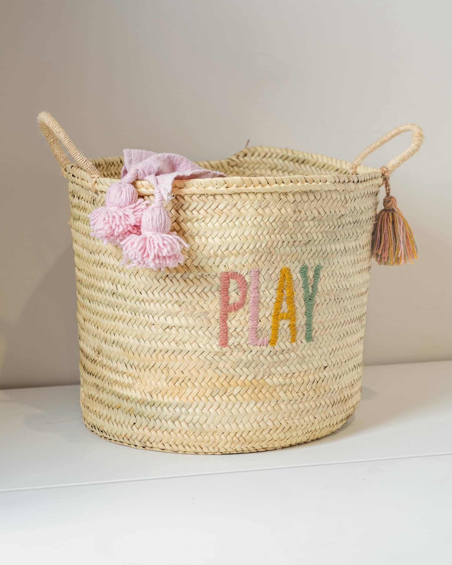 סל ארוג בעבודת יד, מעוטר ברקמה צבעונית ושובבה "PLAY". עם ידיות חזקות ועיצוב מרווח, הוא אידיאלי לאחסון צעצועים, שמיכות או פריטים יומיומיים, תוך הוספת נגיעה מסוגננת ושמחה לכל חלל. הגדיל הדקורטיבי מוסיף קסם ייחודי, מה שהופך אותו לתוספת מושלמת לחדרי ילדים או לפינת המשחקים.
