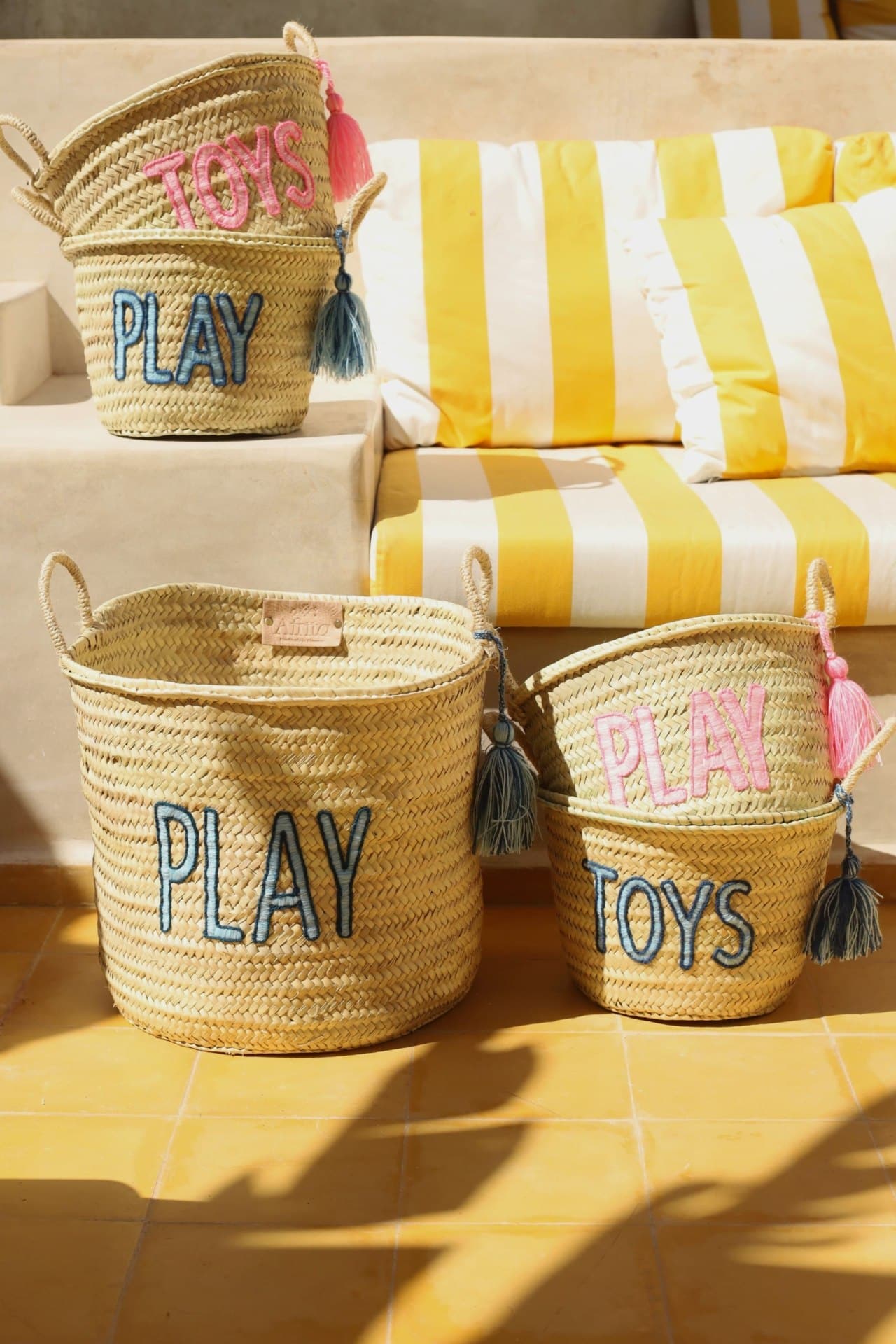 סל ארוג בעבודת יד, מעוטר ברקמה כחולה ושובבה "TOYS". עם ידיות חזקות ועיצוב מרווח, הוא אידיאלי לאחסון צעצועים, שמיכות או פריטים יומיומיים, תוך הוספת נגיעה מסוגננת ושמחה לכל חלל. הגדיל הדקורטיבי מוסיף קסם ייחודי, מה שהופך אותו לתוספת מושלמת לחדרי ילדים או לפינת המשחקים.
