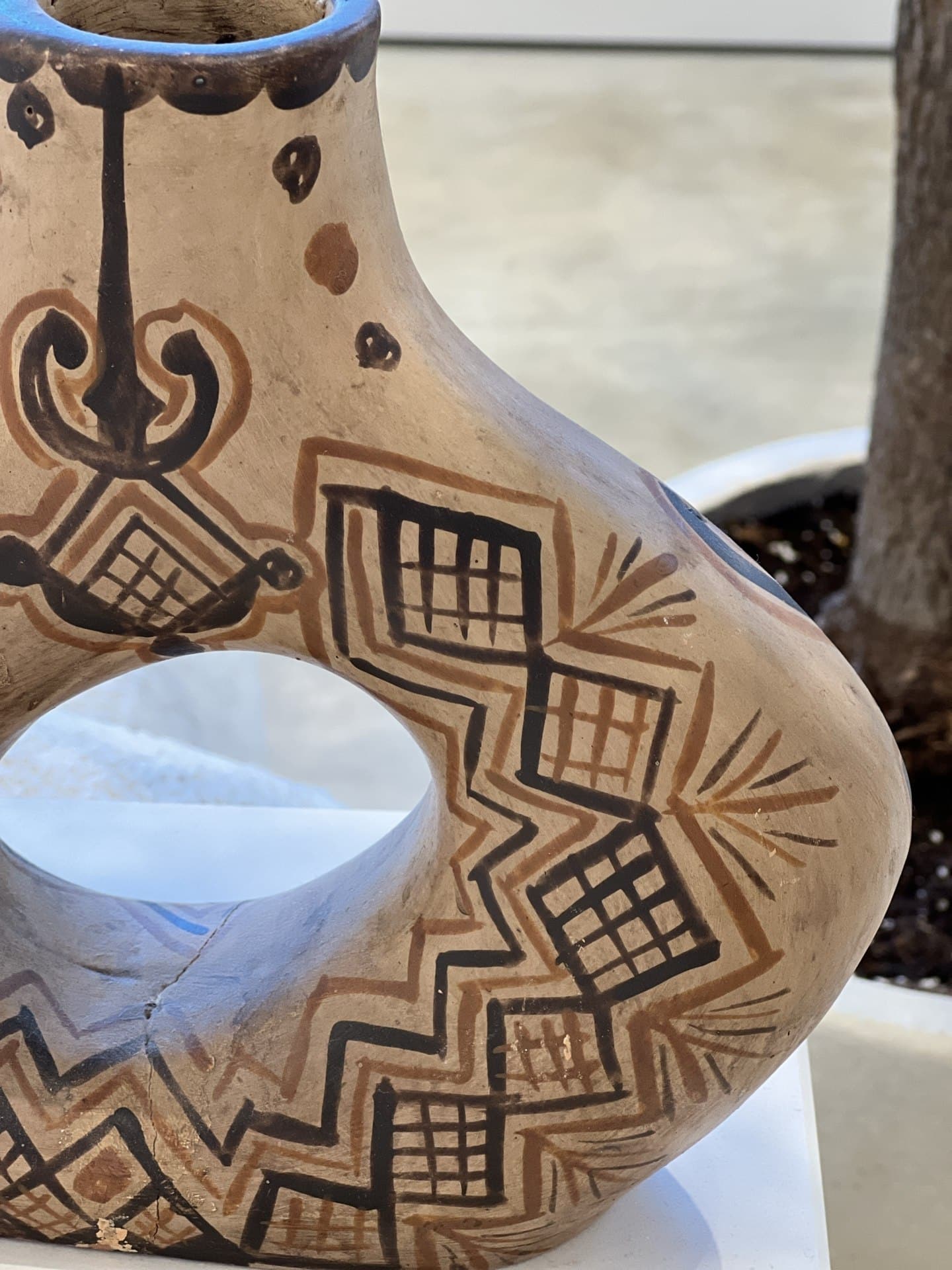 ואזה בעבודת יד מטדלקט מרוקאי, עם עיטורים גיאומטריים בהשראת המסורת הברברית.