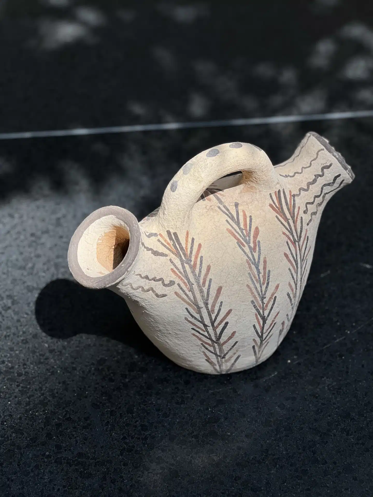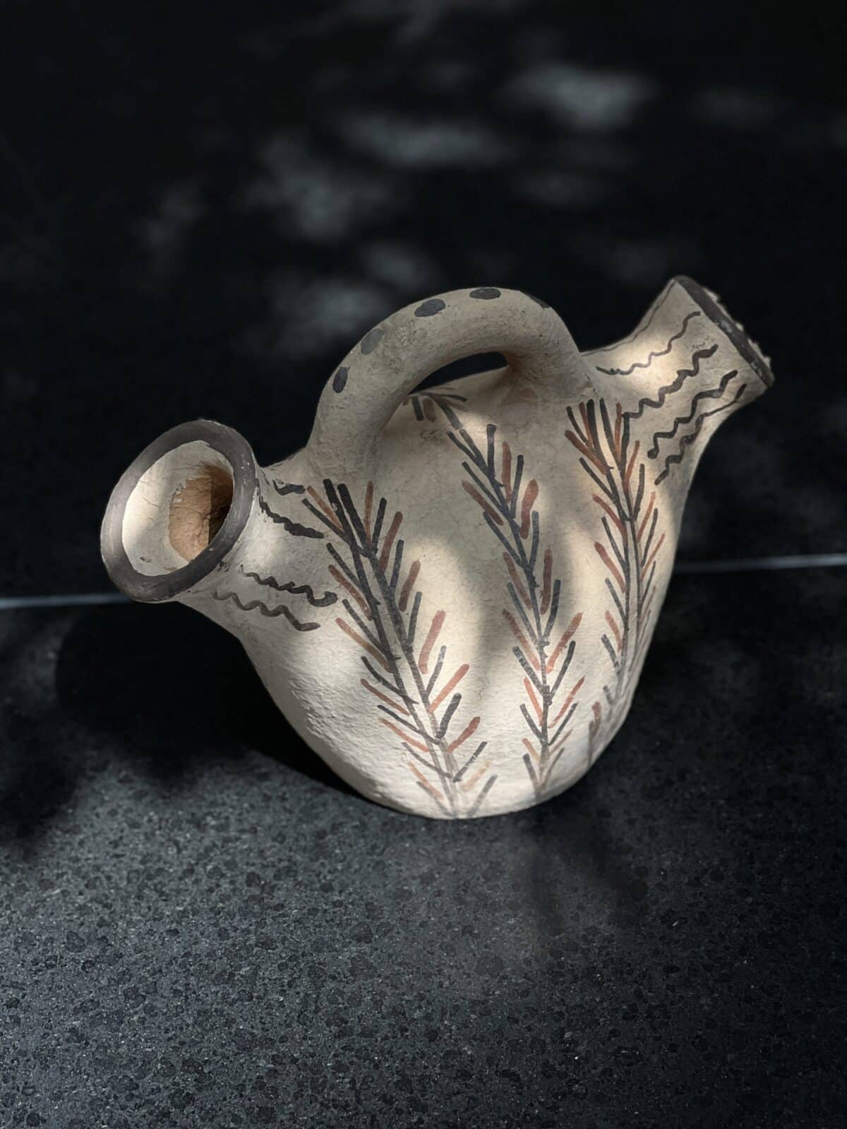כד מרוקאי מסורתי בעבודת יד מהרי הריף. עשוי חרס טבעי ומעוטר בדוגמאות ברבריות מצוירות ביד. פריט אותנטי ובעל נוכחות – מושלם לקישוט או לסידור פרחים יבשים.