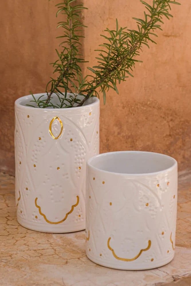 כלי קרמיקה ייחודי זה, בעבודת יד ממרוקו, משלב אומנות מסורתית עם אלגנטיות על-זמנית. החריטות העדינות, בהשראת האדריכלות המרוקנית, מעניקות לו מראה עשיר ומלא אופי. אידיאלי כפריט דקורטיבי, כמתקן לכלי מטבח או כואזה יפהיפיה, הוא מוסיף חמימות ותחושת אותנטיות לכל חלל.