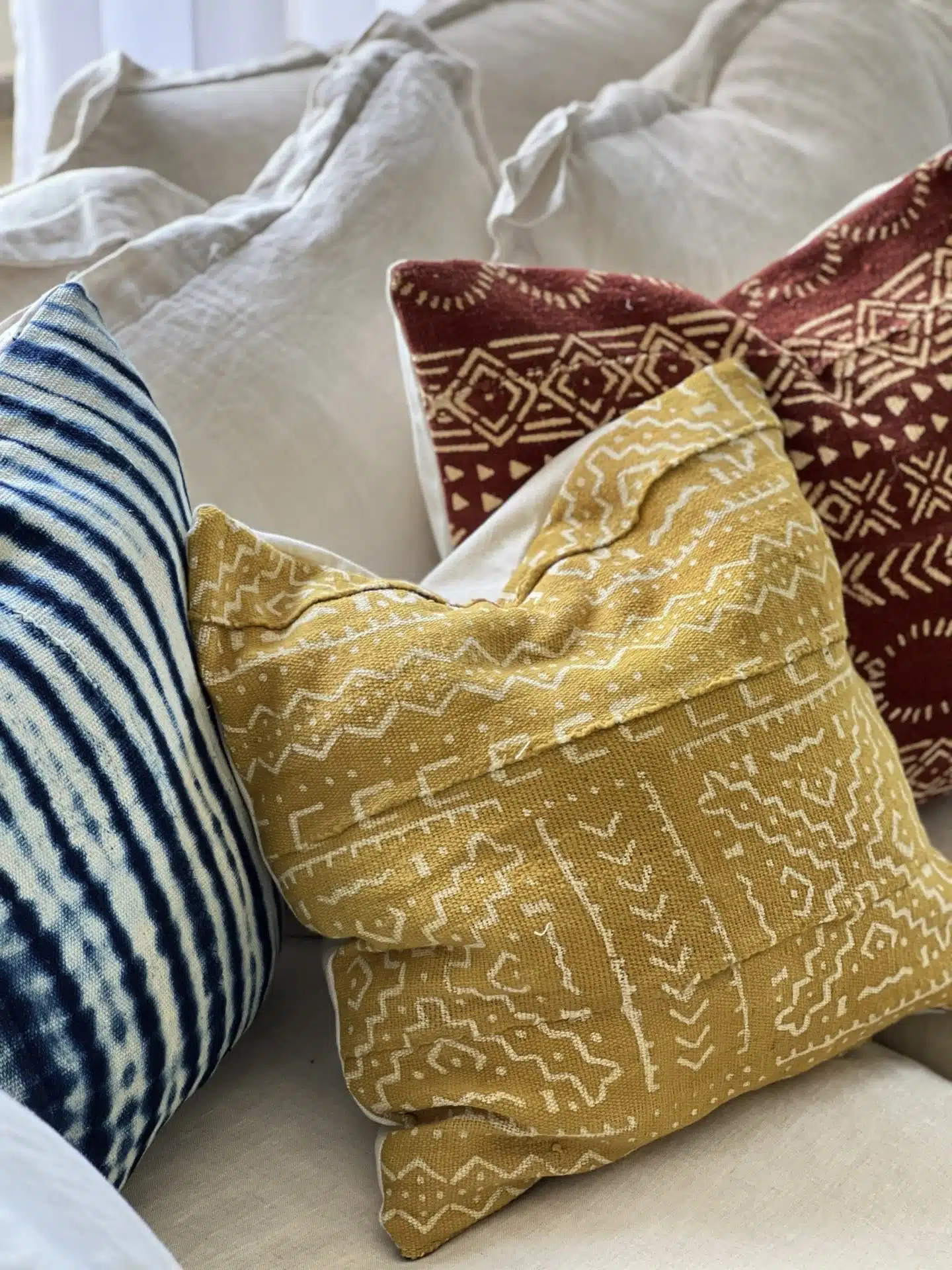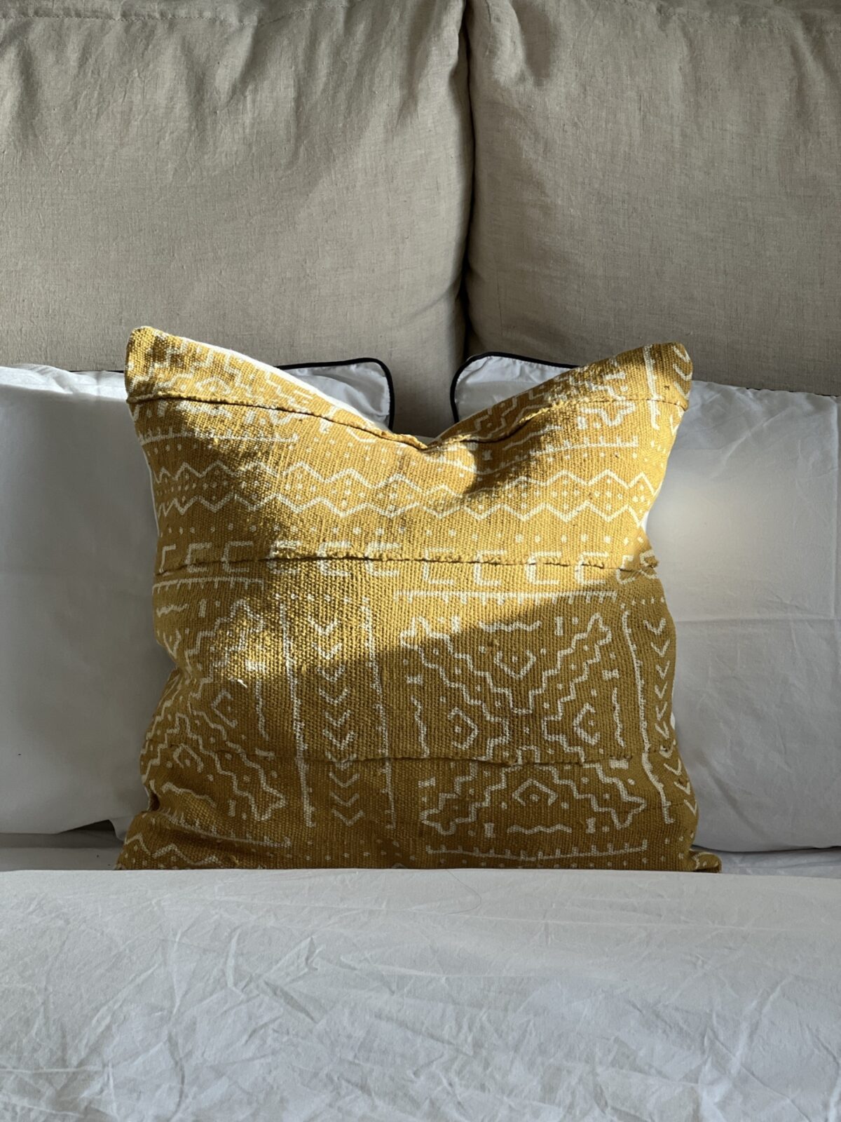 כרית נוי עשויה בעבודת יד מבד אפריקאי אותנטי, מוסיפה נגיעה של מסורת ואומנות לכל חלל. כל פריט מעוטר בדוגמאות סמליות וייחודיות, המגלמות סיפור של מורשת ויצירה.