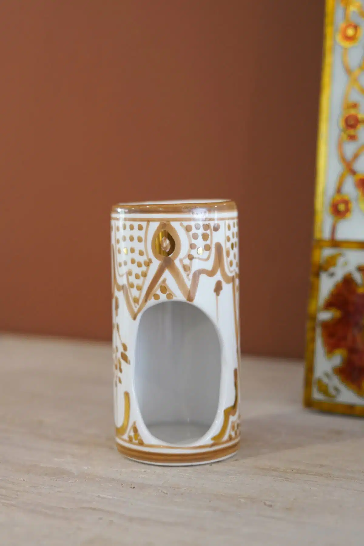 מבער קרמי אלגנטי להפצת ניחוחות משכרים בבית. מתאים לשימוש עם מגוון השמנים הטבעיים שלנו ליצירת אווירה נעימה ומרגיעה. הוסיפו מים וטיפות שמן למבער ותיהנו מחוויית ארומתרפיה קסומה.