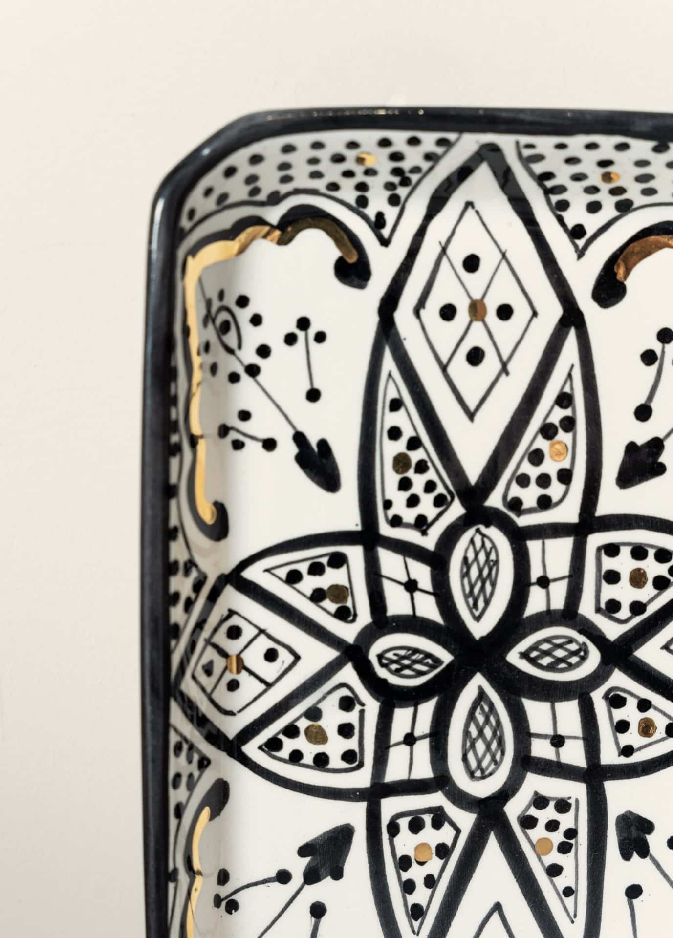 מגש מלבני מעוצב בעבודת יד, מקושט בזהב 12K. מושלם להגשת קינוחים ועוגות, או לשימוש כמגש תכשיטים יפהפה.