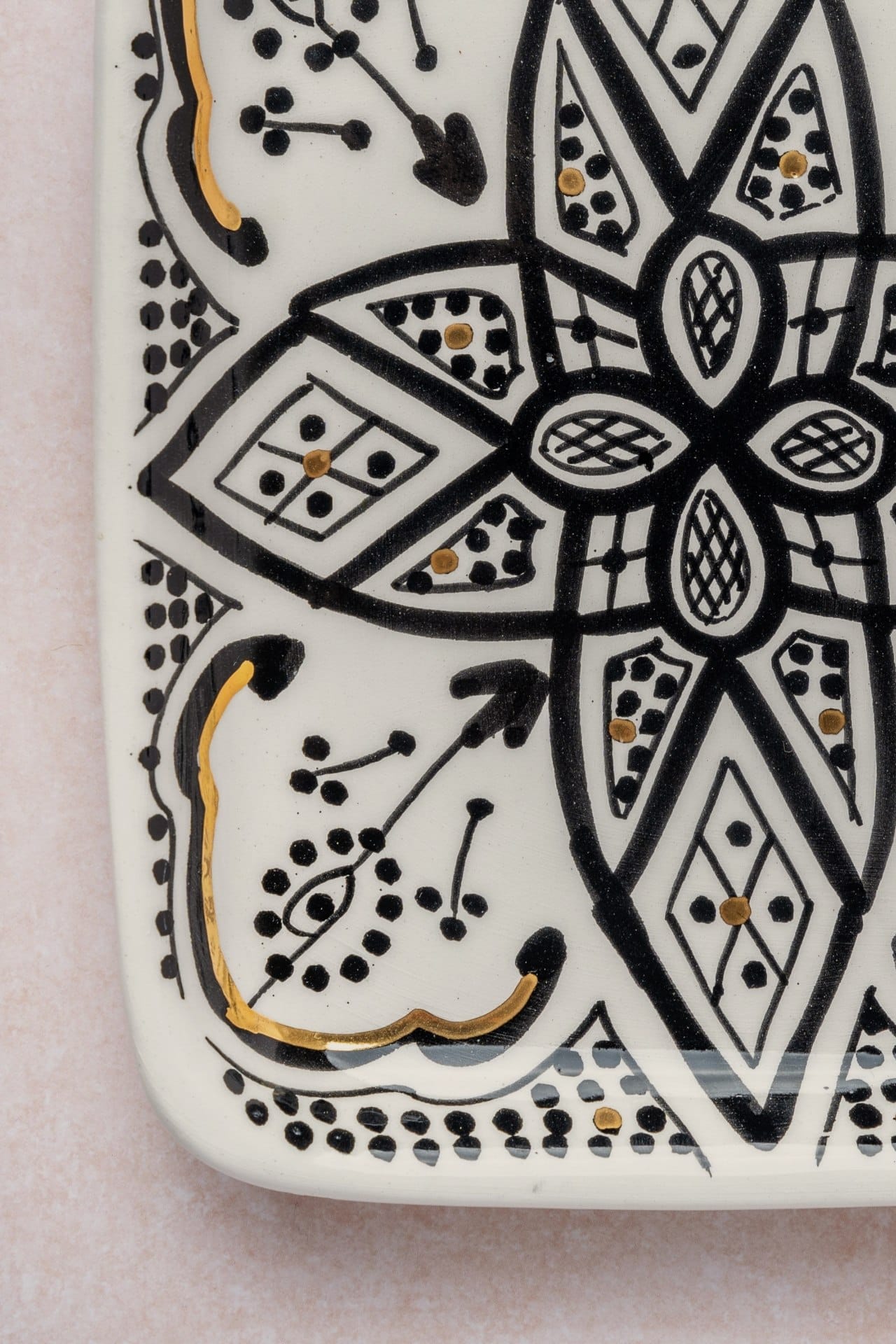 מגש מלבני מצויר בעבודת יד, מעוטר זהב 12K. מושלם להגשת קינוחים ועוגות. או להשתמש בו כמגש תכשיטים יפה.