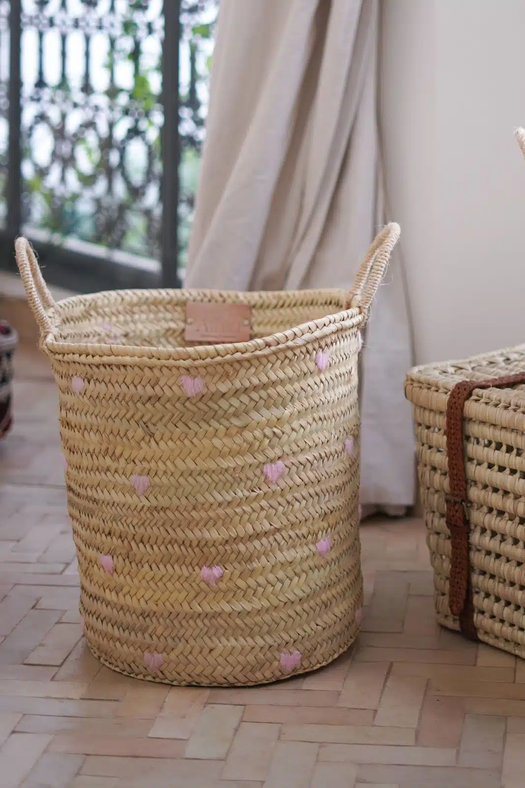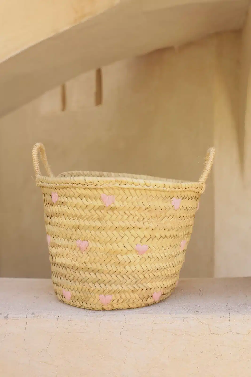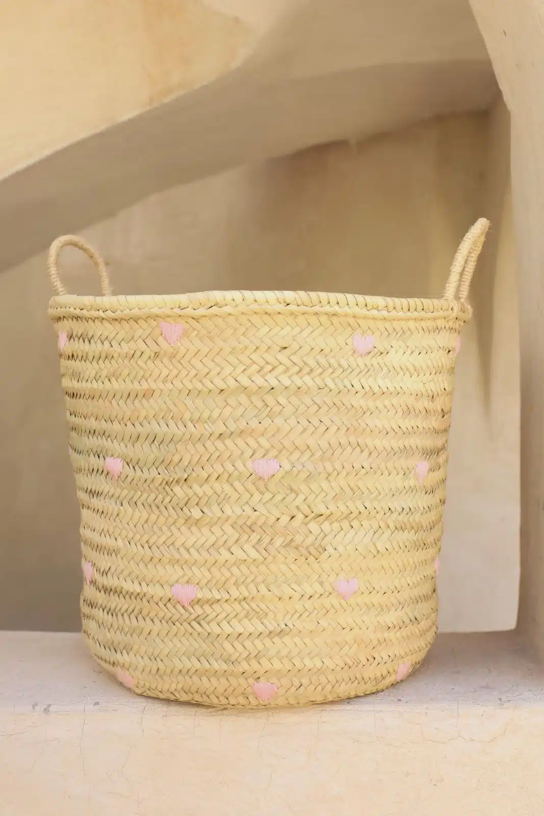 סל ארוג בעבודת יד, מעוטר ברקמת לבבות צבעונית ושובבה. עם ידיות חזקות ועיצוב מרווח, הוא אידיאלי לאחסון צעצועים, שמיכות או פריטים יומיומיים, תוך הוספת נגיעה מסוגננת ושמחה לכל חלל. תוספת מושלמת לחדרי ילדים או לפינת המשחקים.