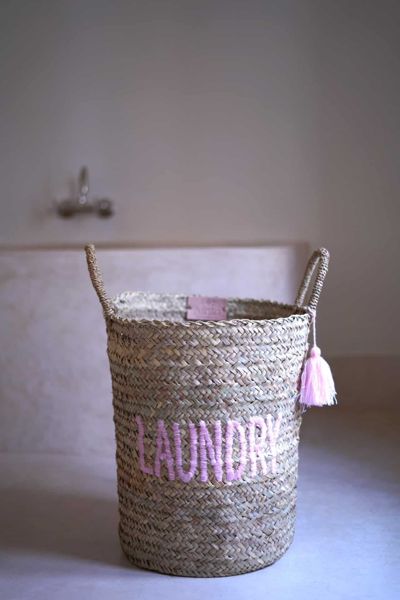 סלי כביסה קלועים בעבודת יד מעלי דקל טבעיים, עם רקמה עדינה בגווני פסטל וגדילים שובבים. פתרון מלא קסם ופרקטיות לארגון הבית.
