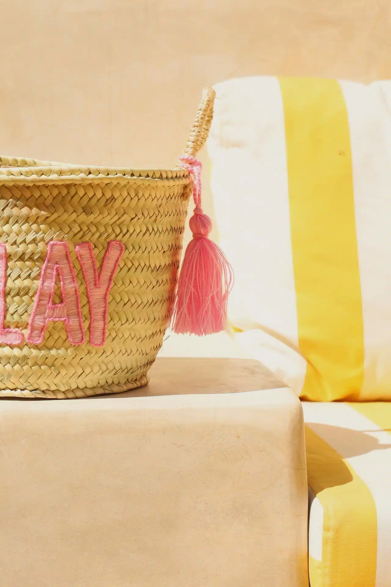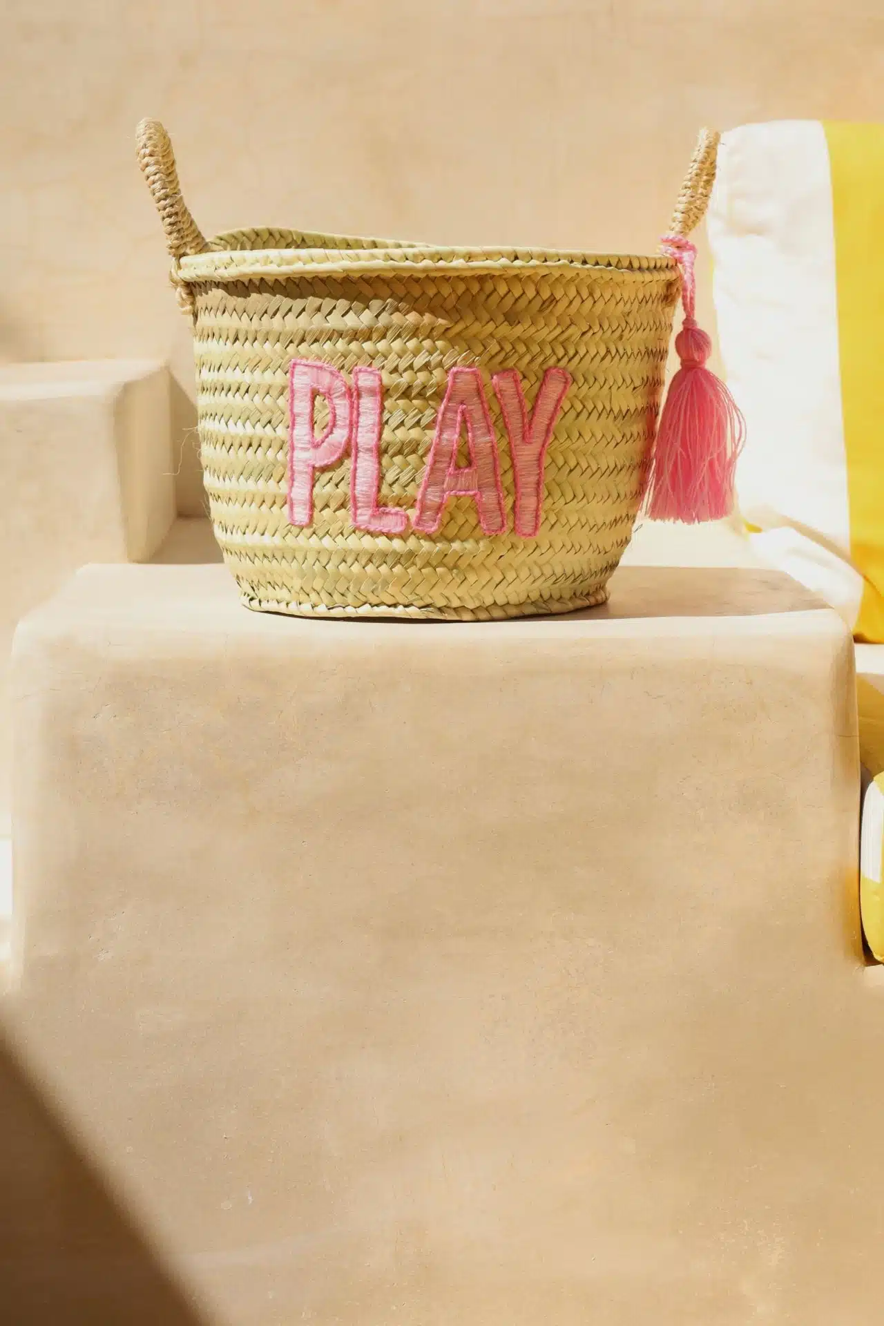 סל ארוג בעבודת יד, מעוטר ברקמה ורודה ושובבה "PLAY". עם ידיות חזקות ועיצוב מרווח, הוא אידיאלי לאחסון צעצועים, שמיכות או פריטים יומיומיים, תוך הוספת נגיעה מסוגננת ושמחה לכל חלל. הגדיל הדקורטיבי מוסיף קסם ייחודי, מה שהופך אותו לתוספת מושלמת לחדרי ילדים או לפינת המשחקים.
