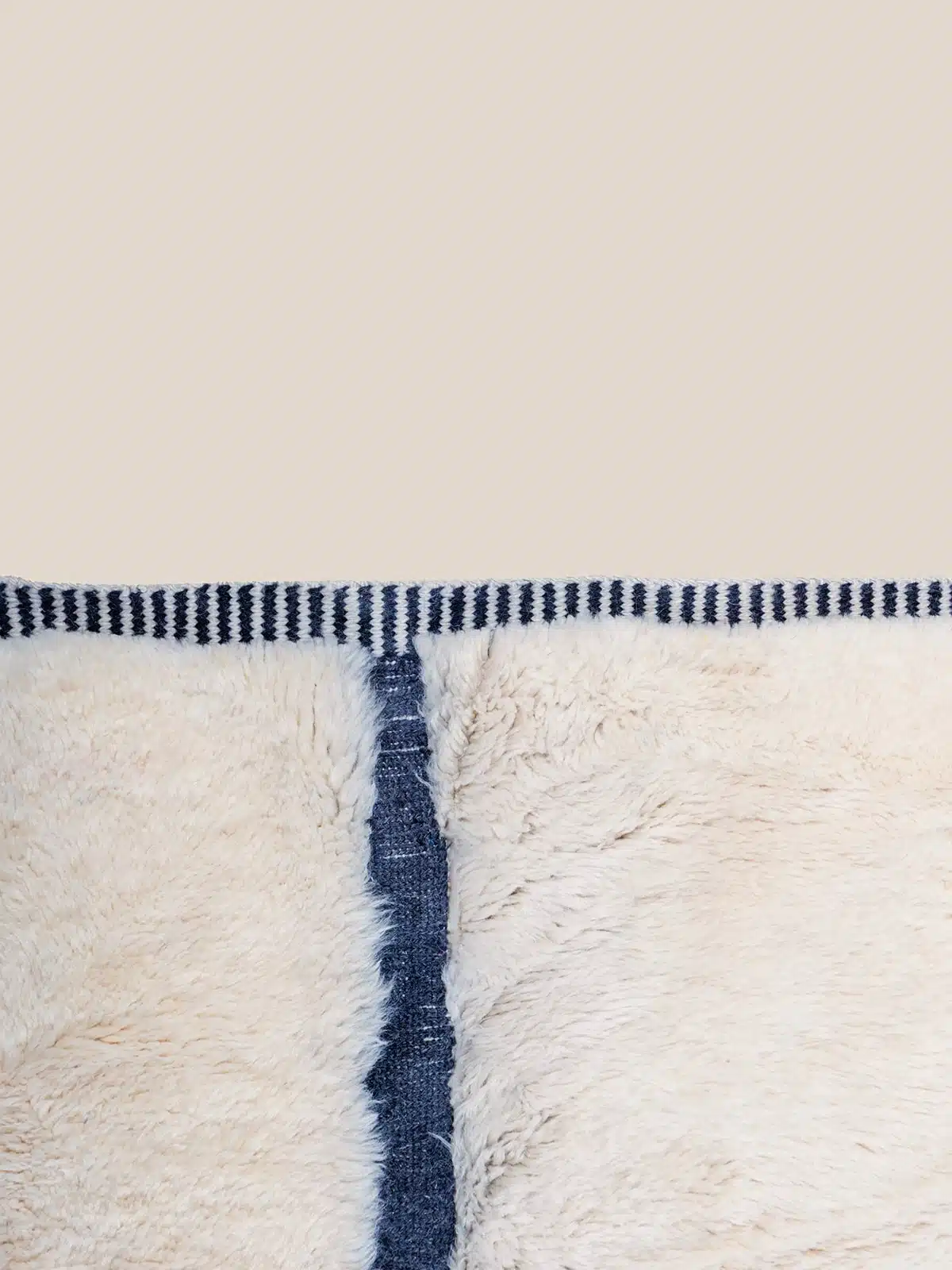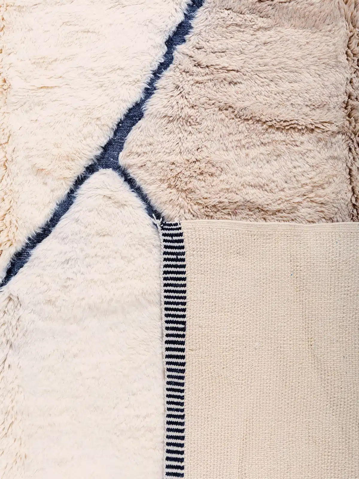 שטיח בני מרירת אותנטי זה נארג בעבודת יד במרוקו מצמר איכותי. הוא מציג עיצוב מודרני אך מסורתי, עם מרקם רך ומלטף ודוגמא בגוונים ניטרליים. מושלם להוספת חמימות ואלגנטיות לכל חלל.