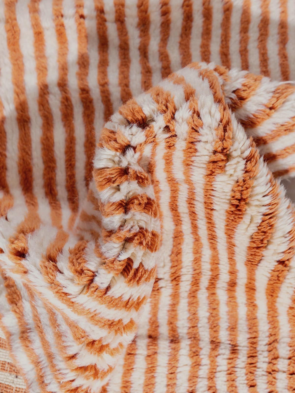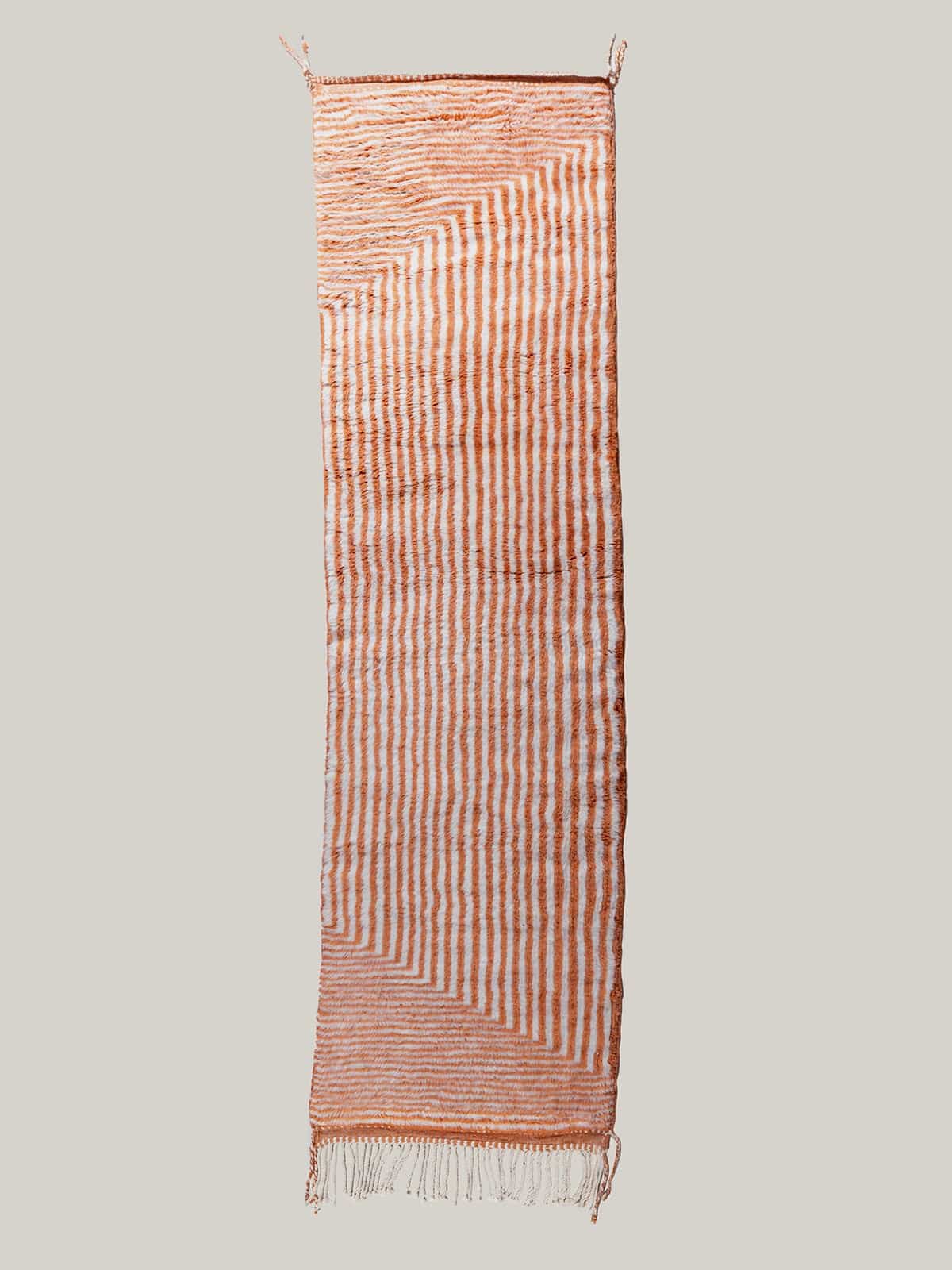 שטיח בני מרירת יוקרתי זה נארג בעבודת יד במרוקו מצמר מובחר, ומציע מרקם רך במיוחד. הדוגמה הגיאומטרית העדינה, בשילוב גוונים טבעיים, יוצרת מראה קלאסי ומתוחכם. מושלם להוספת אלגנטיות ואופי לכל חלל.